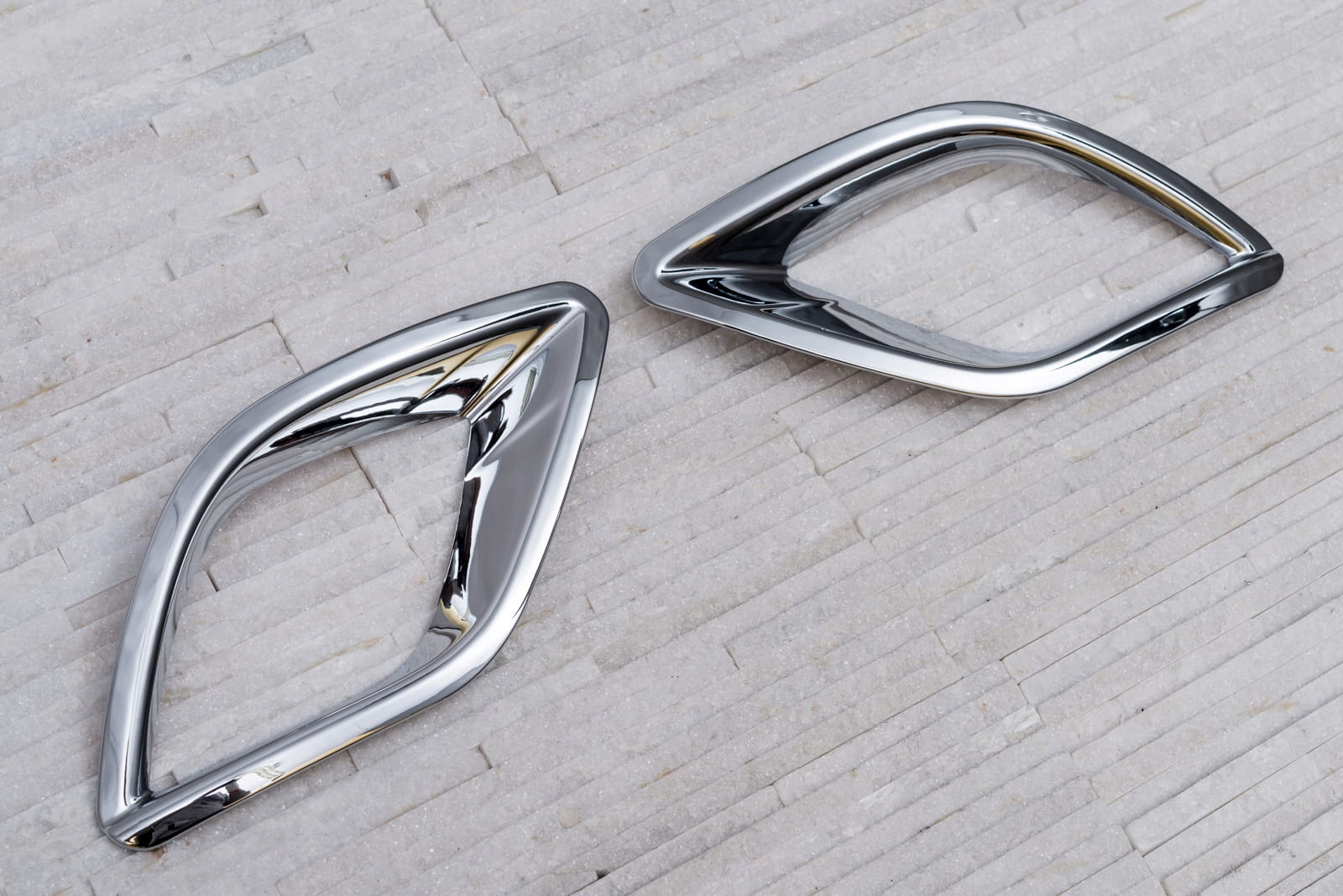 В комплект входит комплект из двух чехлов для ламп. Изделие изготовлено из высококачественного хромированного АБС-пластика. Они собираются с помощью двустороннего скотча Scotch 3M, нанесенного на внутреннюю часть элементов. Мы рекомендуем профессиональную установку.