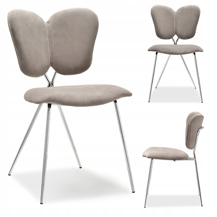 СТУЛ FINE GLAMOUR, ОРГАНИЧЕСКАЯ ФОРМА НА КАРКАСЕ, ХРОМИРОВАННЫЕ КРЫЛЬЯ, БЕЖЕВЫЙ