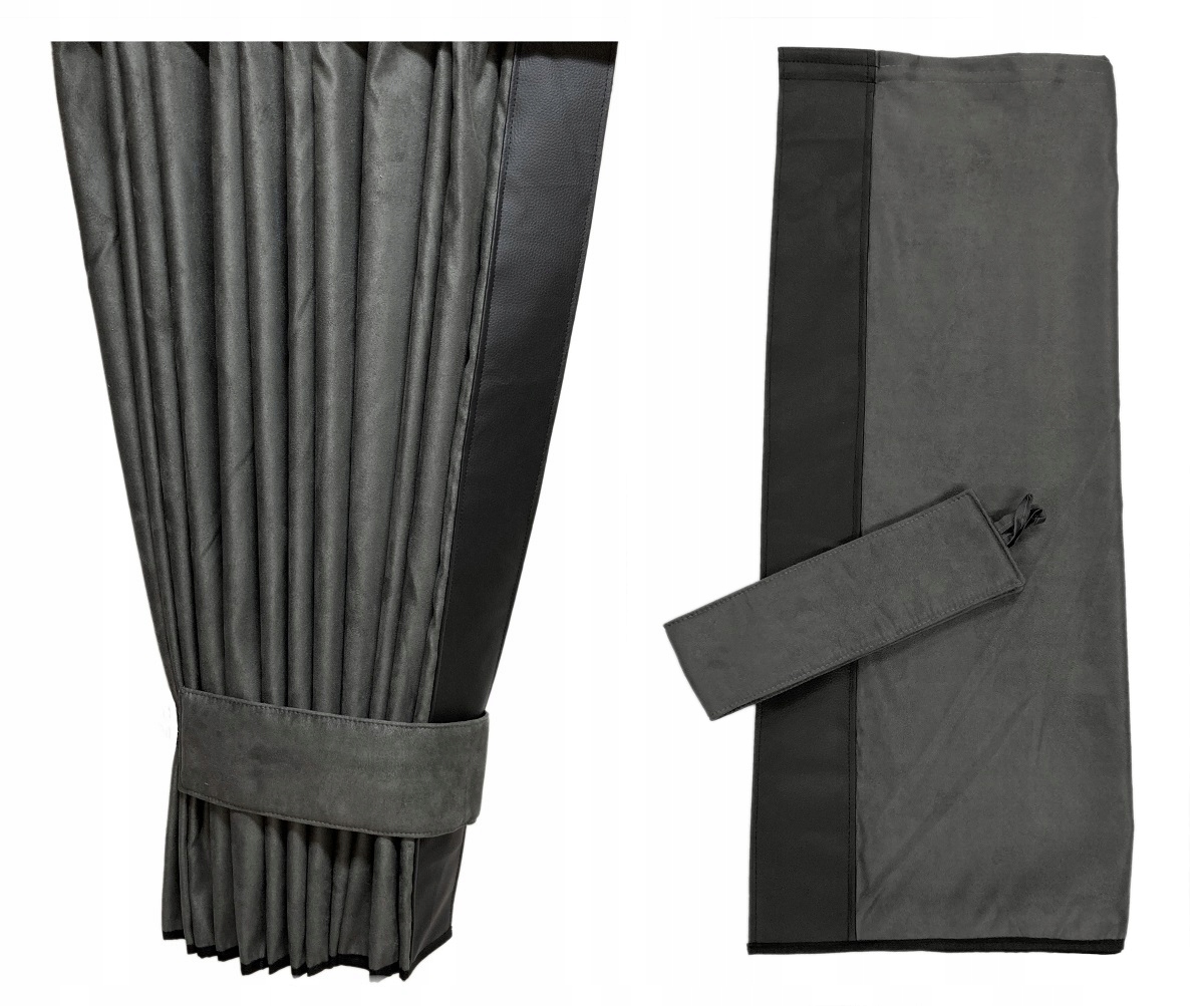 Каждая боковая штора отделана кромкой из экокожи. Край шириной 9 см. - см. фото