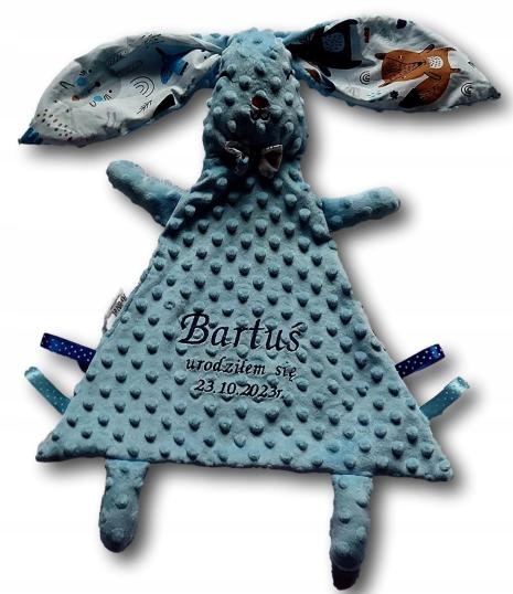 Królik bunny szmatka Przytulanka z metryką metryczką z imieniem datą urodz