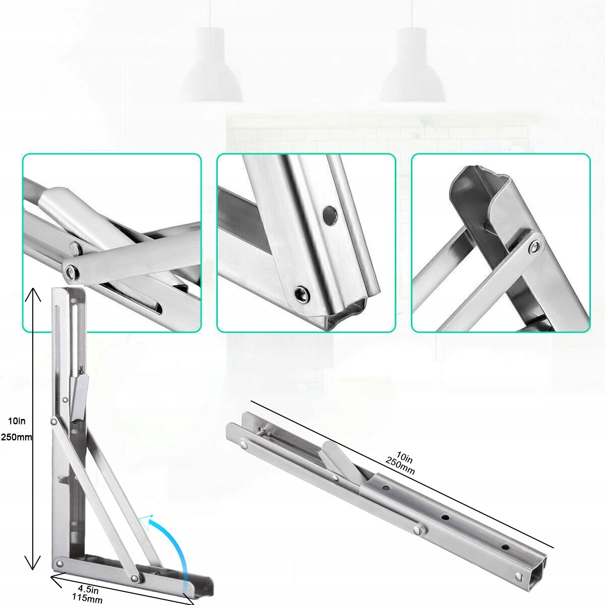подходит для нагрузки до 150 кг. Чтобы развернуться, опора поднимается и захлопнута на месте. Чтобы сложить консоль, просто потяните рычаг внизу. Независимо от того, для прицепов для кемпинга, мебели, таблиц, скамейки или в качестве складывающейся настенной полки - складная консоль является первым выбором для различных применений