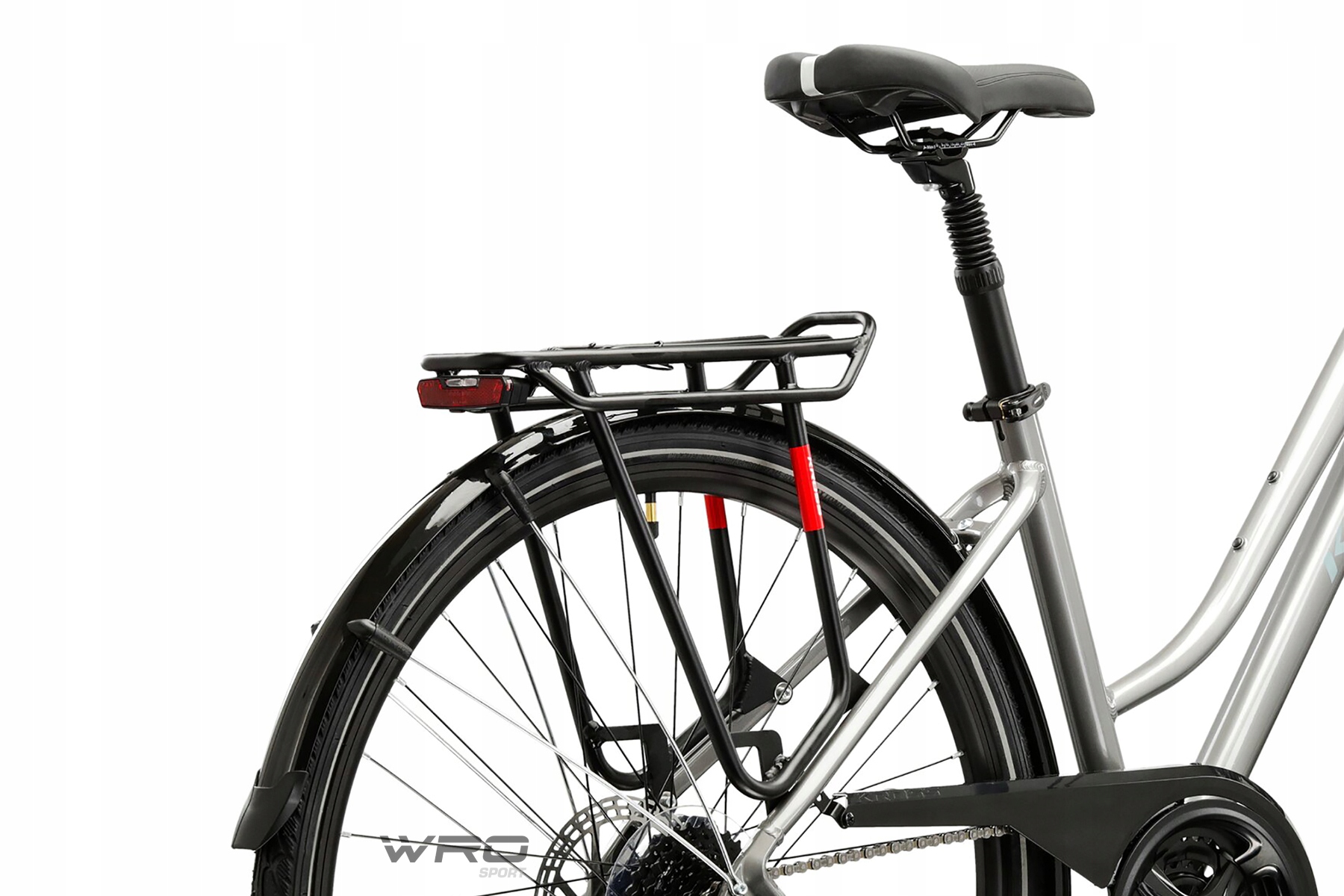 , интегрированный с велосипедным освещением, облегчит езду после темного , а высококачественное седло порадовает вас комфортом, который он предложит вам при преодолении длинных маршрутов. Кроме того, седло был установлен на амортизированном сиденье , который устраняет вибрации, возникающие во время движения при неровности. Целое дополняется твердым и стабильным стволом и полными крыльями. Это позволяет перевозить необходимое оборудование, и не будет проблемой установить на него дополнительные корзины. Рамка окрашена в порошок, что приводит к прочтительной покраски и устойчивости к лаку к механическому повреждению. Рама оснащена внутренним руководством кабелей, что делает велосипед эстетически и аккуратно.