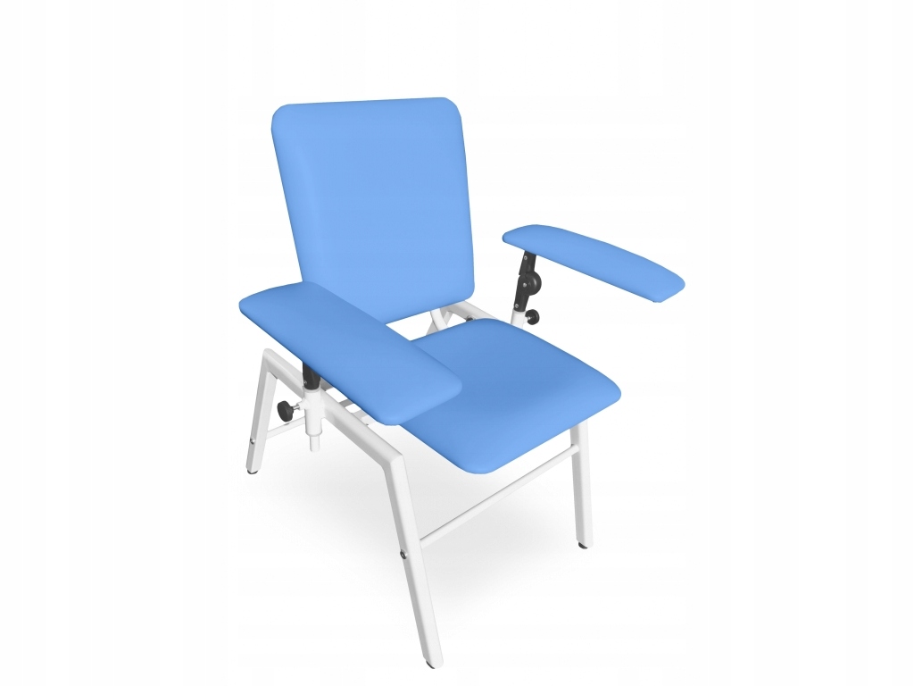 кресло предназначено для сбора крови, это оборудование офисов врача, клиник, больниц и лабораторий. Он оснащен двумя подлокотниками, регулируемыми в двух плоскостях (вверх вниз, вбок). Сиденье, спинка и подлокотники покрыты кожаным или виниловым материалом, доступным в широком спектре цветов. В кресле есть стабильный стальной порошок, окрашенную в белый цвет.