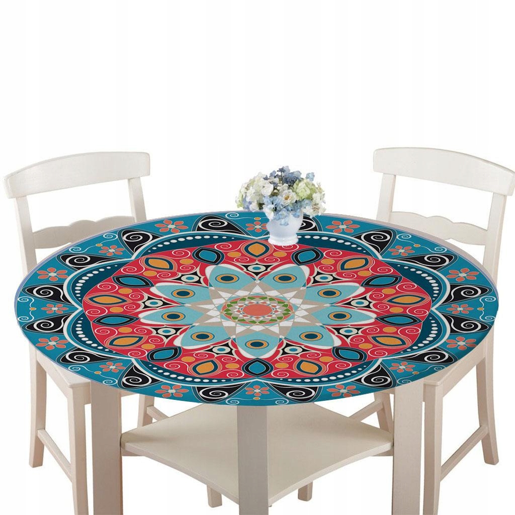 Водостойкая противоскользящая круглая эластичная скатерть с рисунком