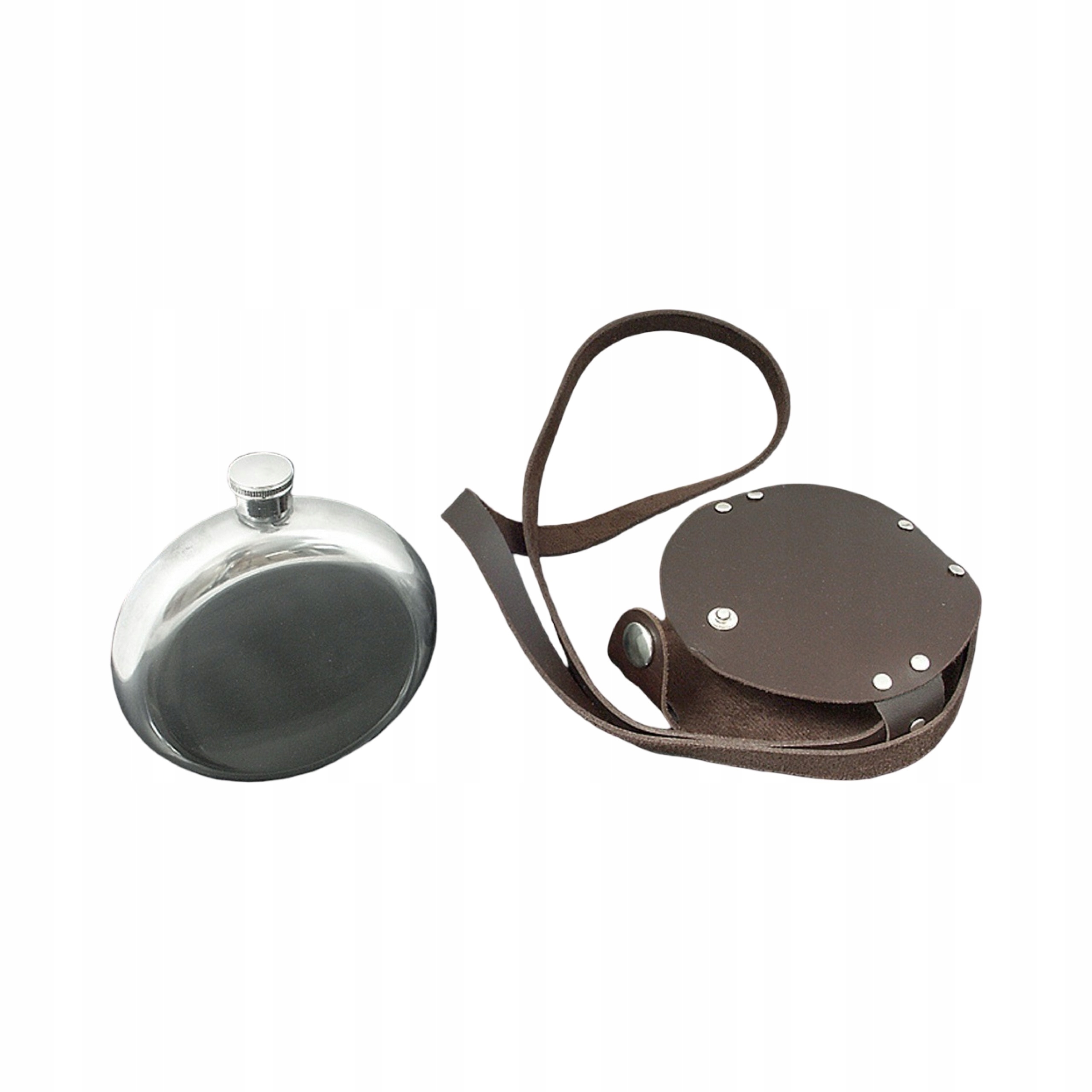 Круглая нержавеющая сталь с емкостью ок. 8 унций / 240 мл - в темно -коричневом корпусе с эко -кожей