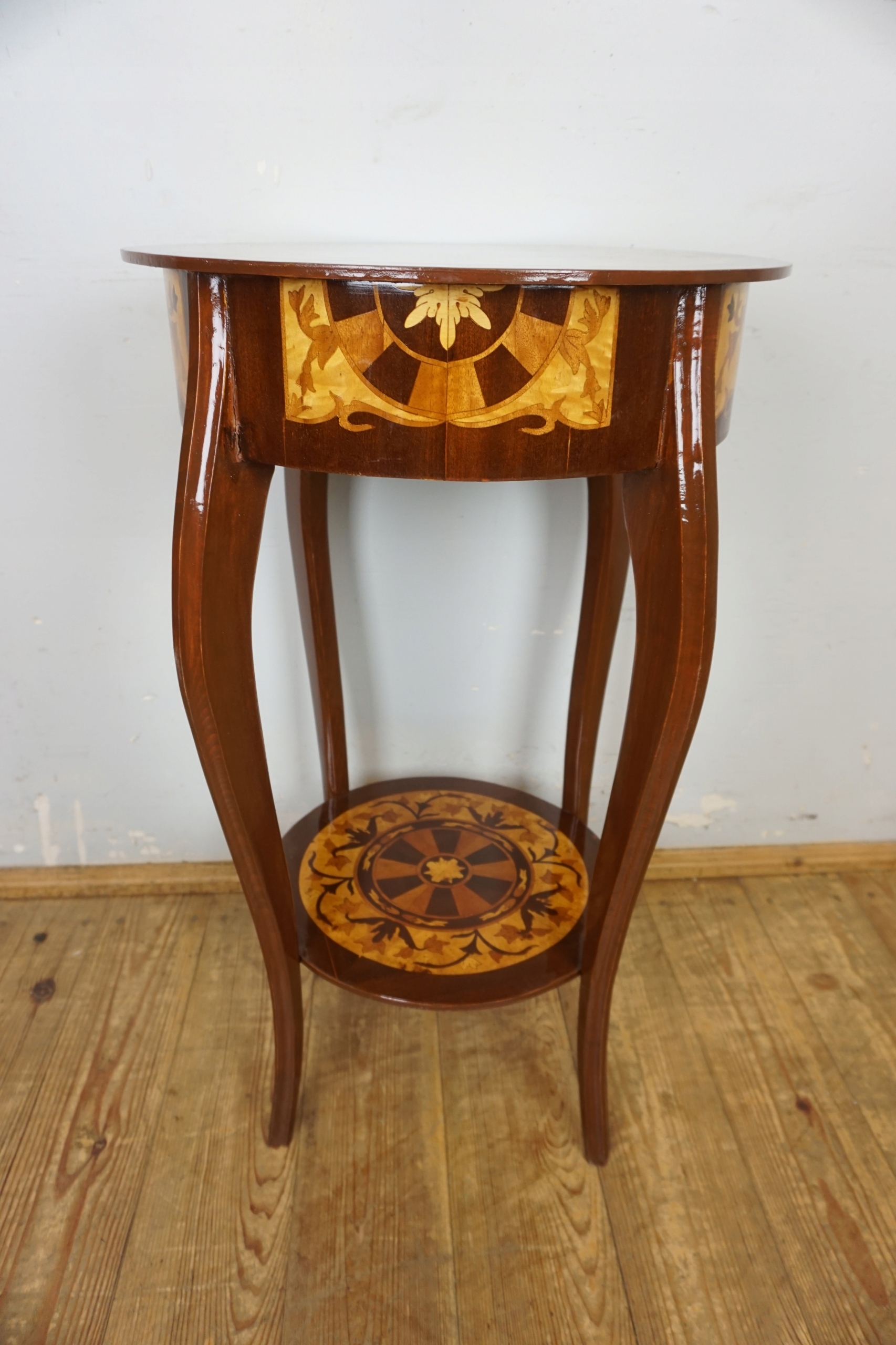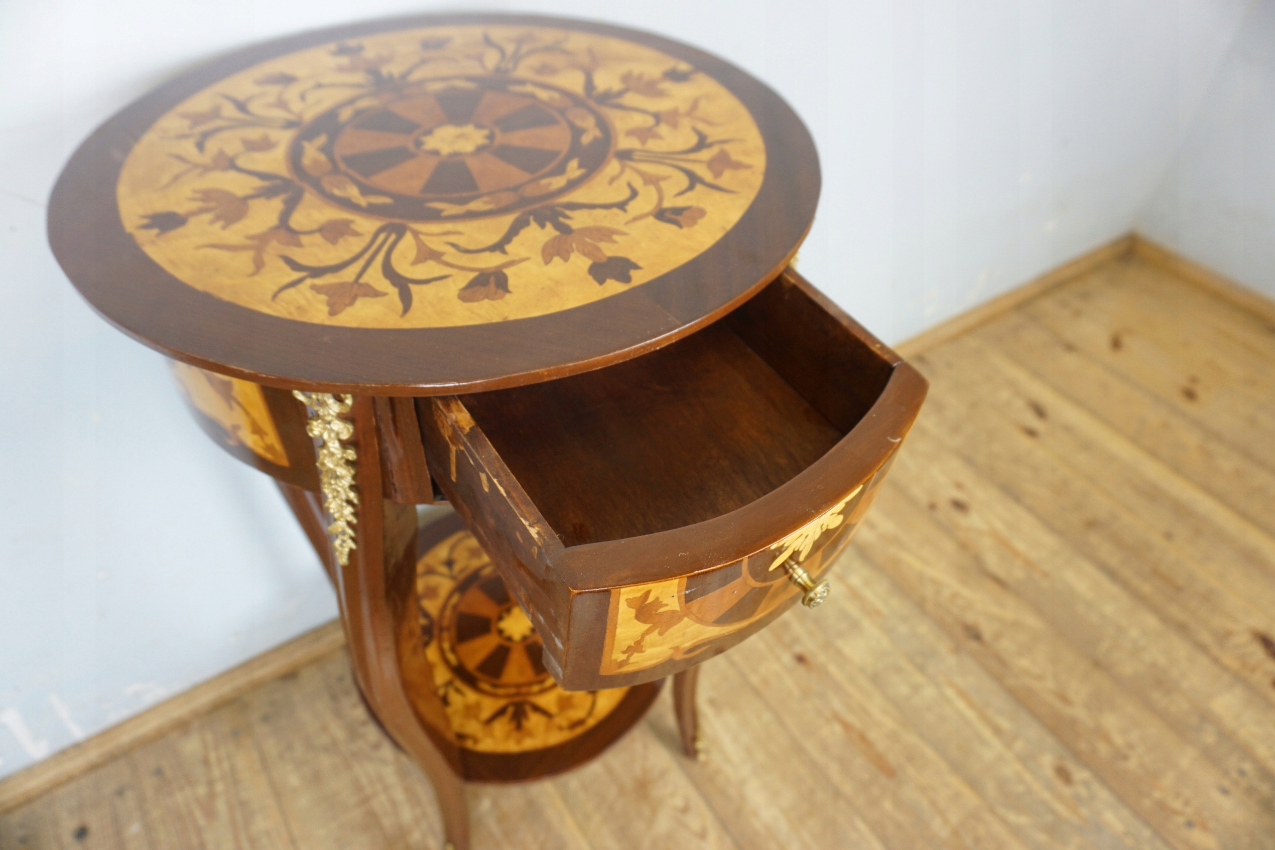 Круглый стол с ящиками.