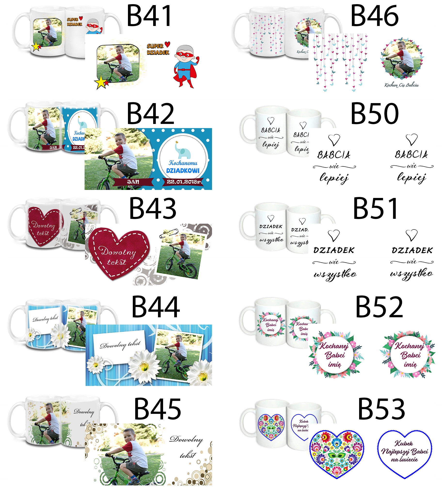 Фотографии также можно поместить в специально подготовленную специальную рамку, подогнанную по размерам кружки. Просто выберите номер кадра и отправьте фотографию или фотографии (в зависимости от выбранного кадра) по электронной почте. Вы также можете добавить в рамки текст, имя бабушки или дедушки, и в этом случае этот текст следует предоставить вместе с фотографиями.
