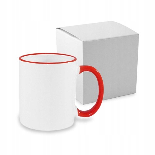 Белая керамическая кружка с красной ручкой, с покрытием JS, покрытым слоем полиэстера для сублимационной печати. Возможна покупка от одной штуки. Кружка в картонной коробке.