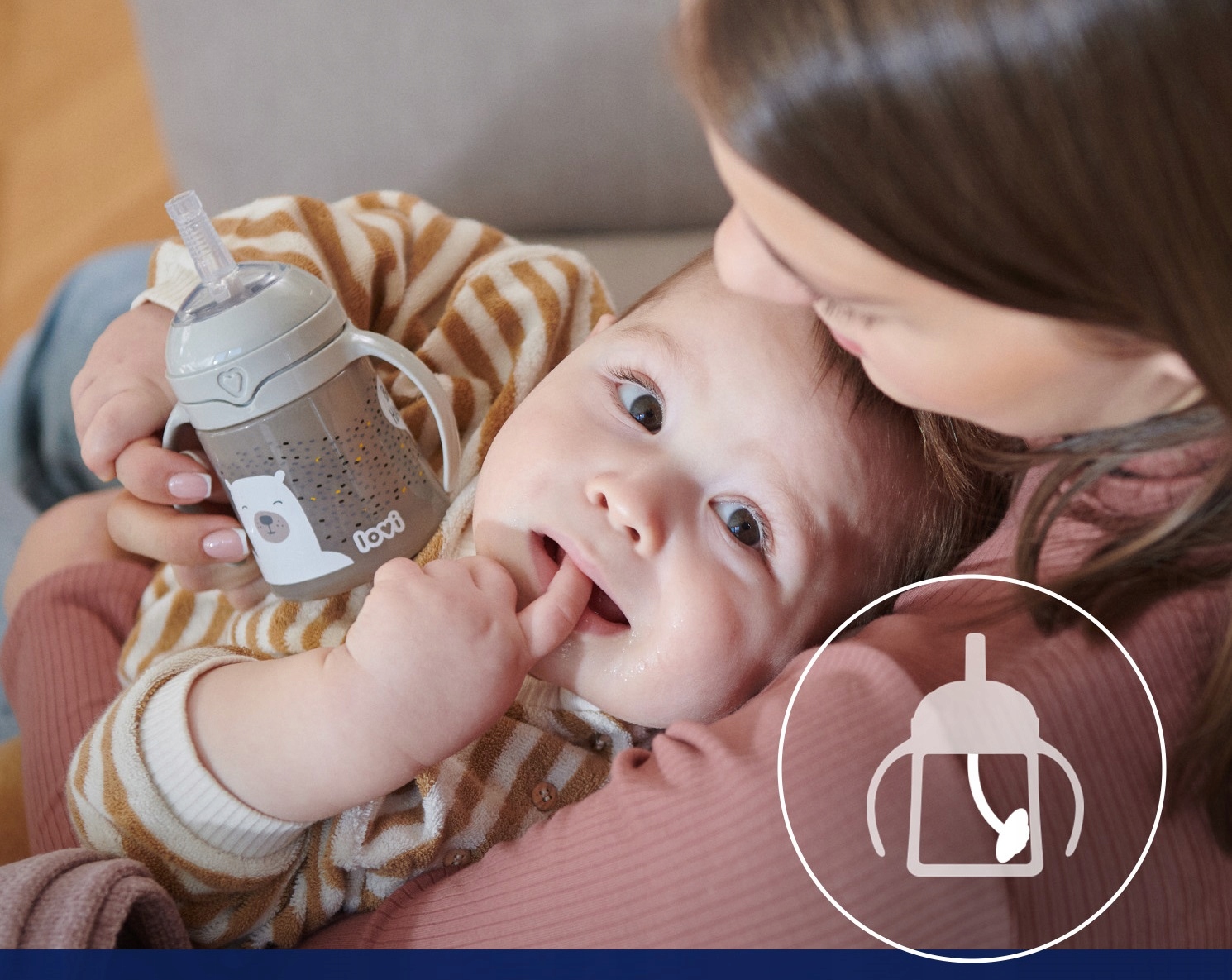 Первая чашка с Lovi Strail - это чашка для самых молодых детей (6 м+), которая предпринимает первые попытки выпить из соломы. Деликатная, гибкая солома правильного диаметра и длины не раздражает небо, и ее легко захватить ребенком. Взвешивание с безопасным размером загружает солому и следует за напитком, позволяя вам свободно пить под любым углом, а съемная крышка облегчает пить с каждой стороны. Небольшой размер чашки (150 мл) и ручки, соответствующие маленьким рукам, делают ее идеальной кружкой для самых молодых детей