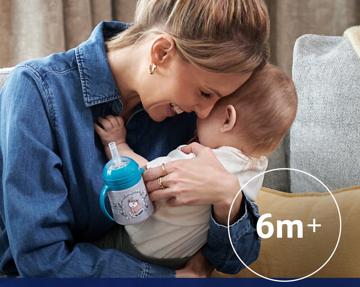 - После чашки с соломой, начинающим, следующим этапом обучения, чтобы выпить, может быть кружка Sippy Master 6m+