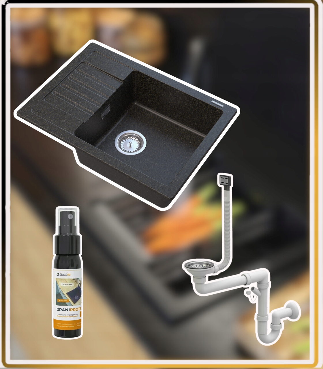 ⭐ Черная гранитная раковина + сифон + пропитать Гранан h2>