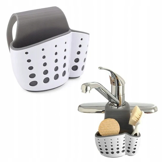 ➡ высококачественный кухонный организатор для раковины, благодаря которой вы можете легко держать порядок на кухне и сохранить необходимые аксессуары, то есть губки, щетки, провода под рукой. Регулировал, чтобы повесить его на кране. Внизу есть отверстия для истощения лишней воды.