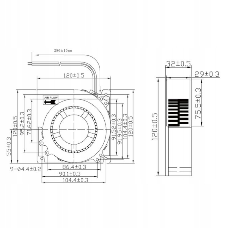 КУЛЬОВИЙ ВЕНТИЛЯТОР 120x32мм 12В DC 2900об/хв ТУРБІННИЙ НАГРУЗОК