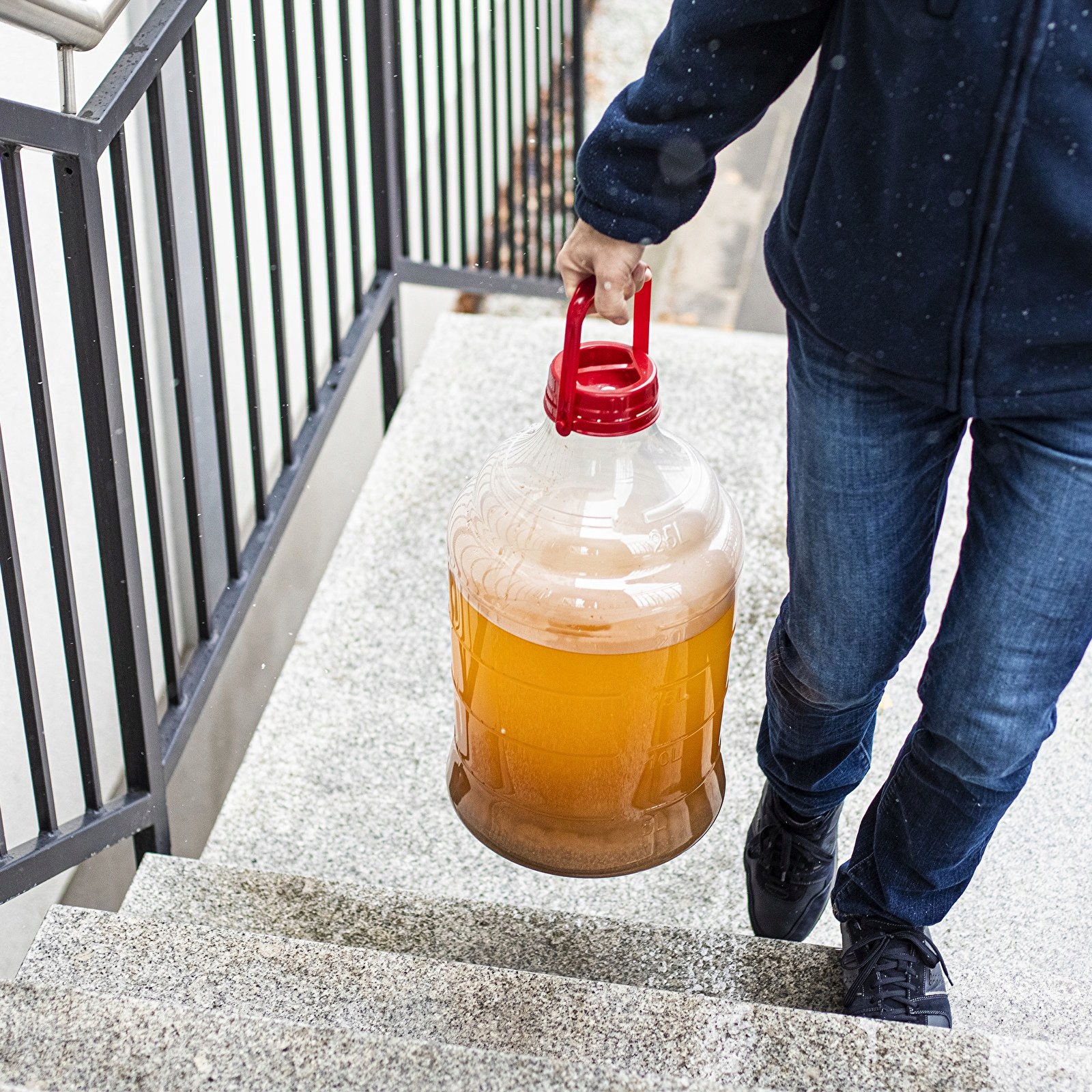 Использовать баллон Lekka Bania станет проще благодаря этому. по шкале, отмеченной на стене, что позволит вам проверить заданное количество. Просто поместите настройки в баллон и закройте его крышкой с бродильной трубкой. Язычки на крышке облегчают открытие и закрытие баллона, а ручка позволяет носить его, когда он пуст. Особая конструкция крышки не имеет уплотнителя, поэтому можно не опасаться, что под ней скапливается плесень и бактерии.