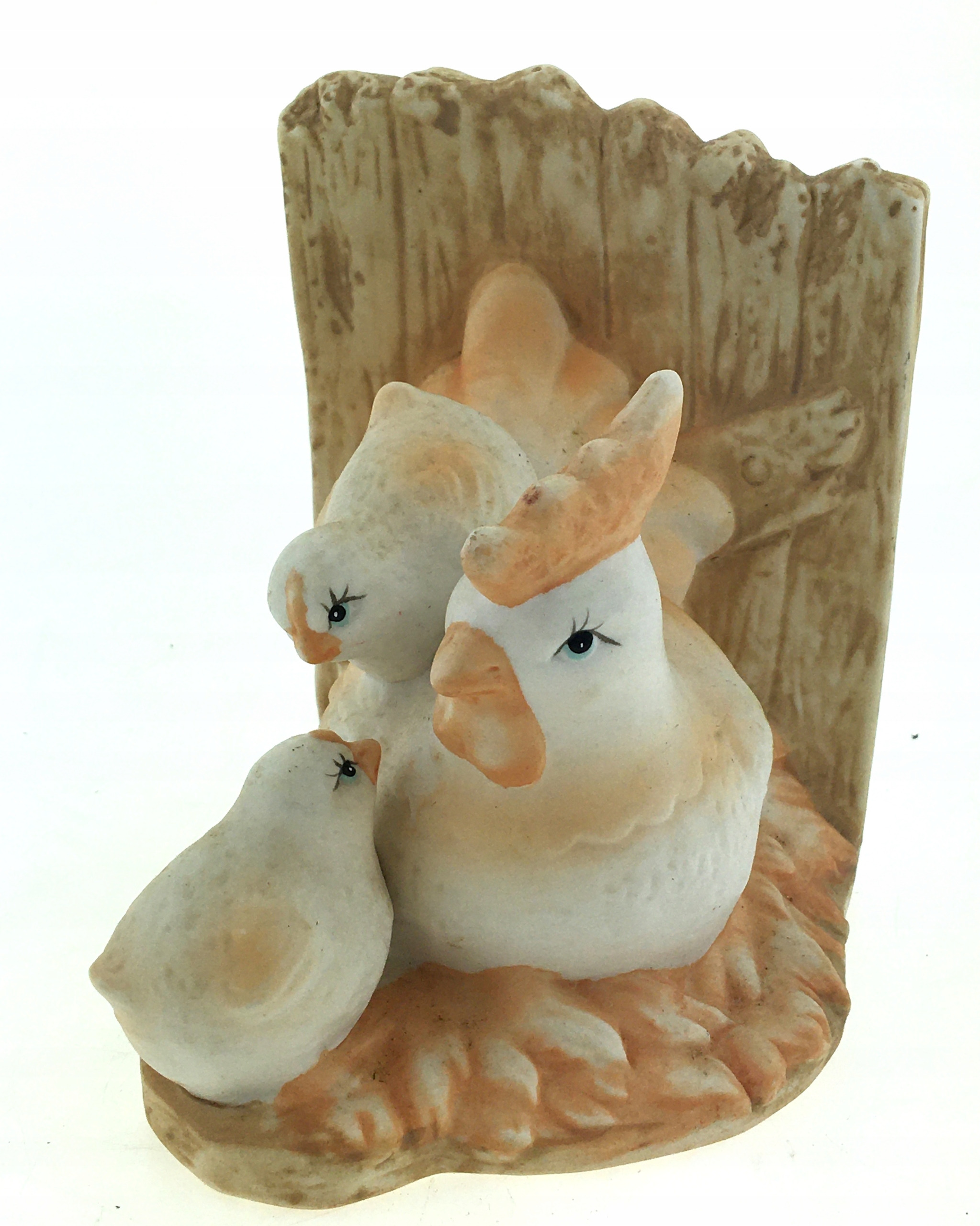 Курица с цыплятами у забора - оригинальная статуэтка из керамики в оттененном бежевом цвете. Тяжелая, устойчивая, аккуратно сделанная. Очень оригинальный декоративный элемент.