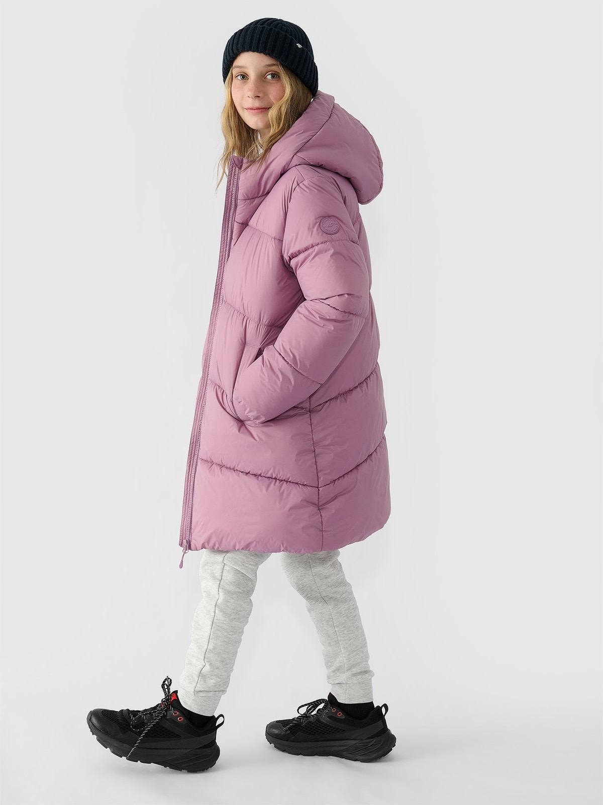 KURTKA ZIMOWA DZIEWCZĘCA 4F SPORTOWA PUCHOWA Z KAPTUREM AW24F455