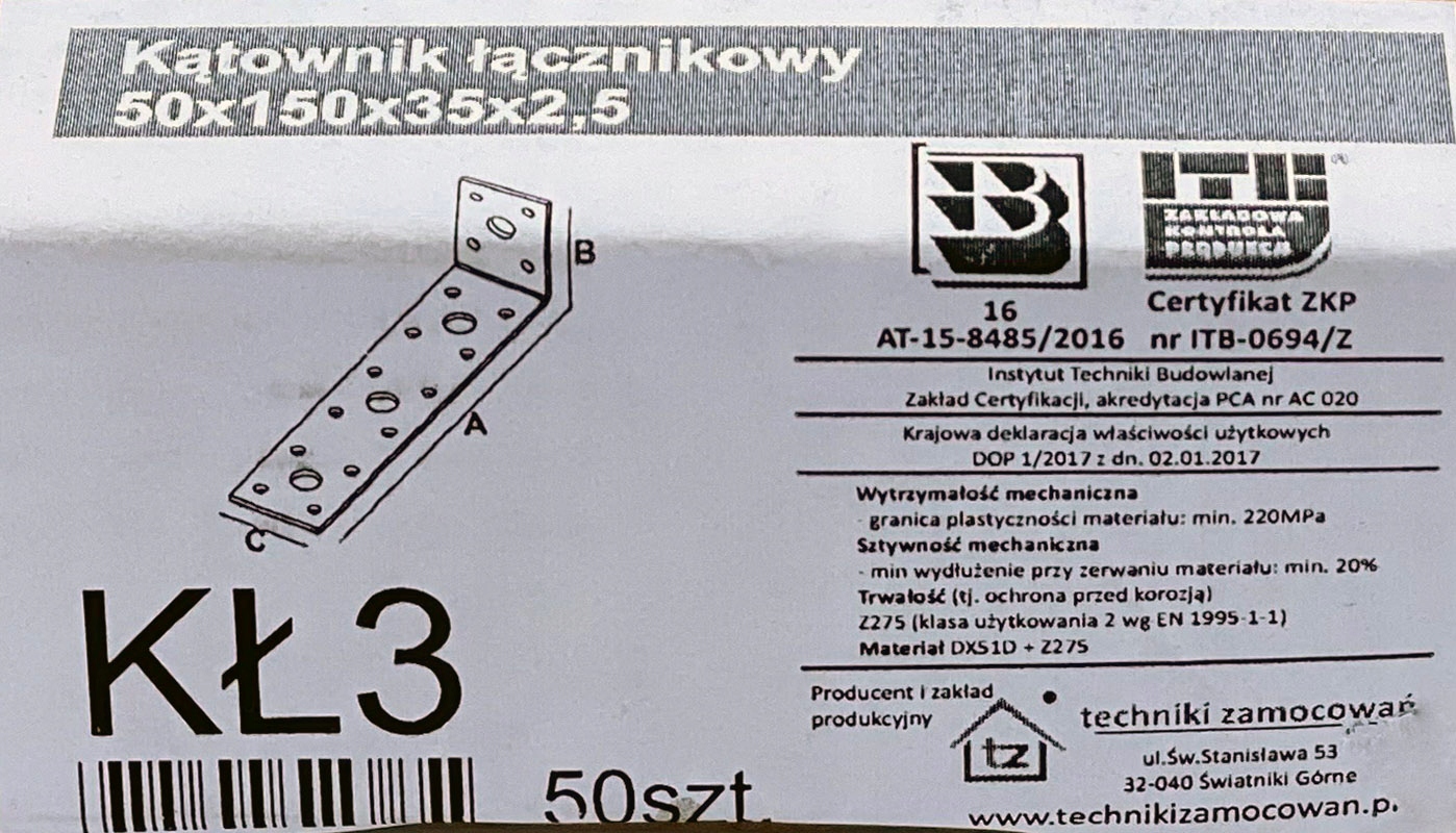 Кути з’єднання 50x150x35x2,5 KŁ3
