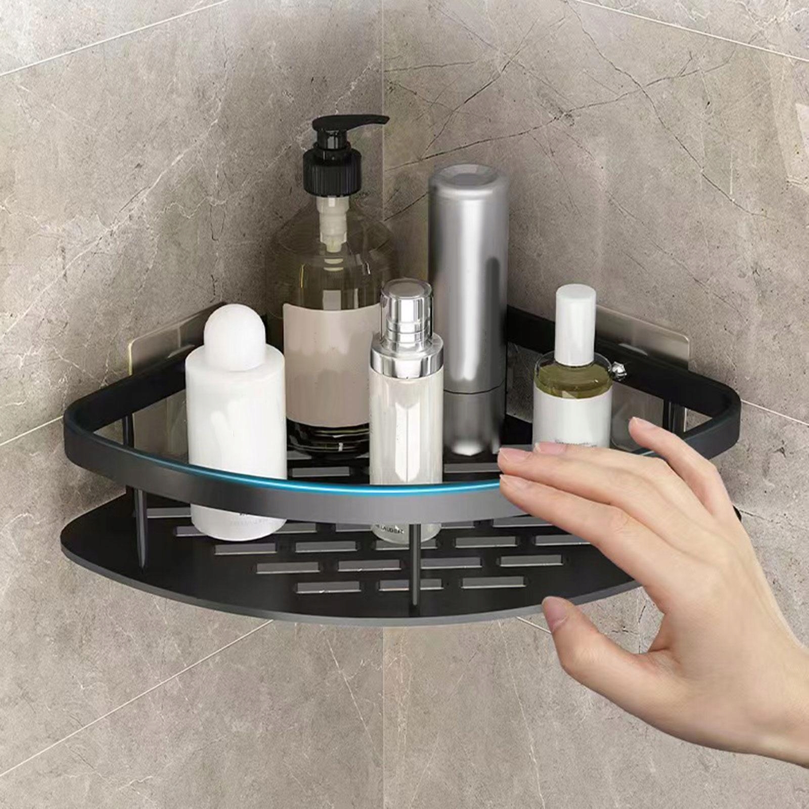 Угловая полка, прикрепленная к стене, сильная угловая полка для душа для комнат в ванной комнате, черный