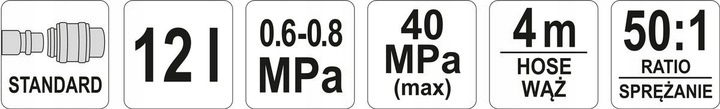 Наконечники шприца для смазки подходят к стандартным аварийным ниппелям. Бак емкостью 12 литров, оснащен воздухоотводным и предохранительным клапаном.