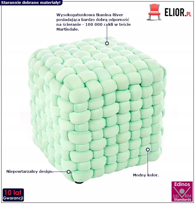 Самая важная особенность Deluma Pouf, безусловно, является комбинация формы куба со структурой, напоминающей плетенные волокна. Благодаря этому, в дополнение к уникальному внешнему виду, этот продукт невероятно удобен. Это здорово, в качестве дополнительного места для сидения, стильный подводник или дизайнерский добавление -при увеличении эстетики окружающей среды. Обеспечивает высокую устойчивость к истиранию - забудьте о страхах, связанных с быстрым потреблением мебели, и необходимости заменить ее через несколько недель или месяцев! Модный, яркий цвет в сочетании с необычным дизайном будет отличным в интерьерах, украшенных скандинавскими, боховыми, классическими и местами, где тщательное изготовление ценится с использованием материалов высочайшего качества. Делума не занимает много места, что, безусловно, является важной информацией для людей, которые хотят завершить Комната, но у них нет слишком много свободного пространства