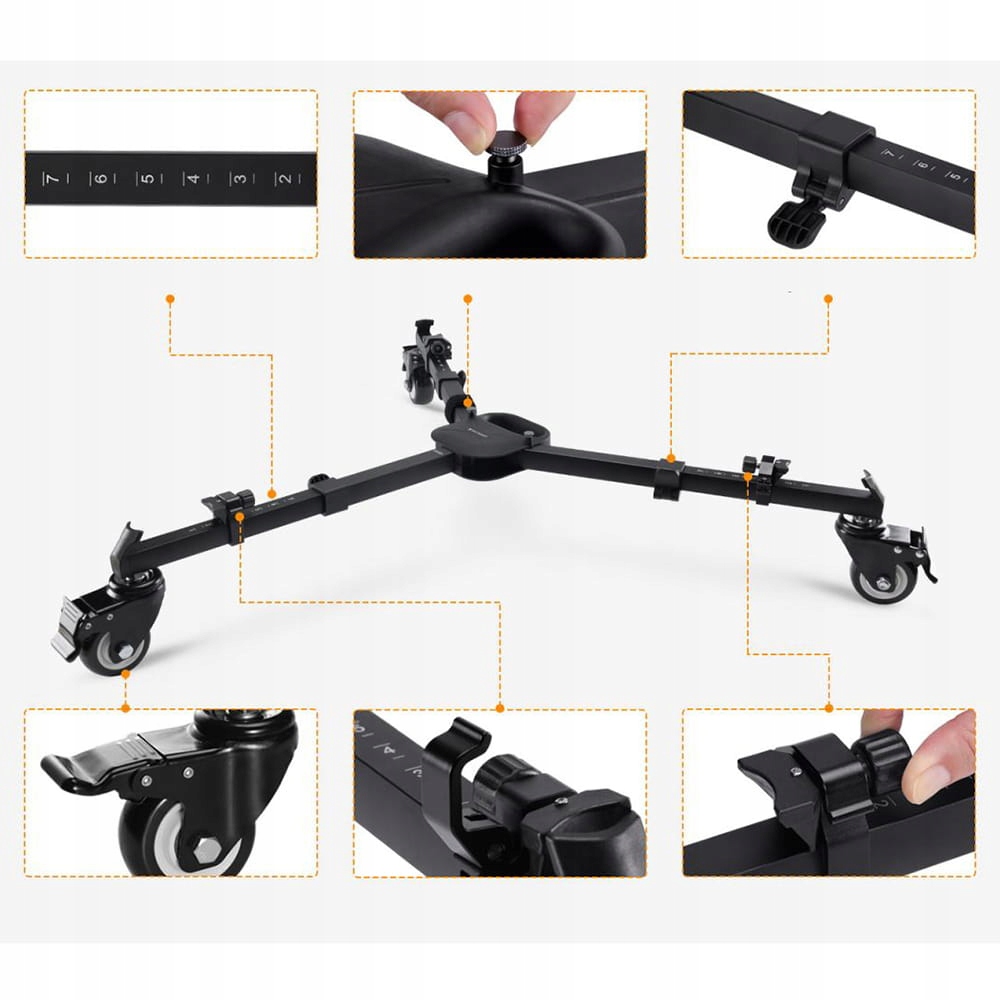 k & f concept ms30 - это профессиональная тележка для штатива Фотографическое и освещение, предназначенное для удобного и плавного движения тяжелого оборудования на съемочной площадке. Высокое изготовление на основе алюминия и сталь , вдумчивый дизайн и точное регулирование делают его отличным выбором для требовательных фотографических создателей. Оснащенные тремя телескопическими , fold -out независимо, руки позволяют быстро и безопасную сборку большинства штатива, доступных на рынке.
