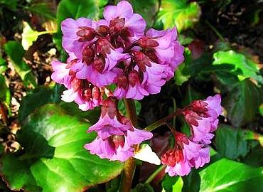 КВІТИ БАДАНУ КОРДАТНОГО РОЖЕВОГО В ТІНІ