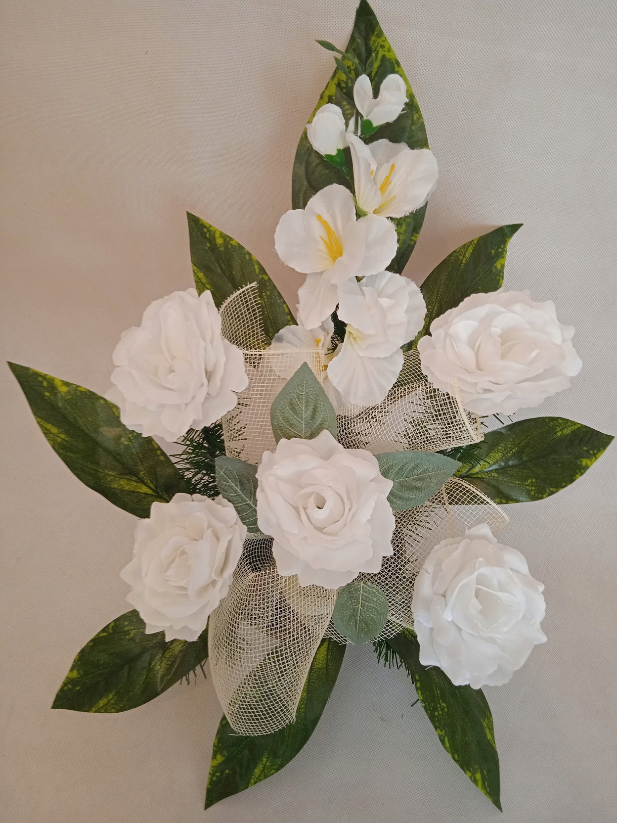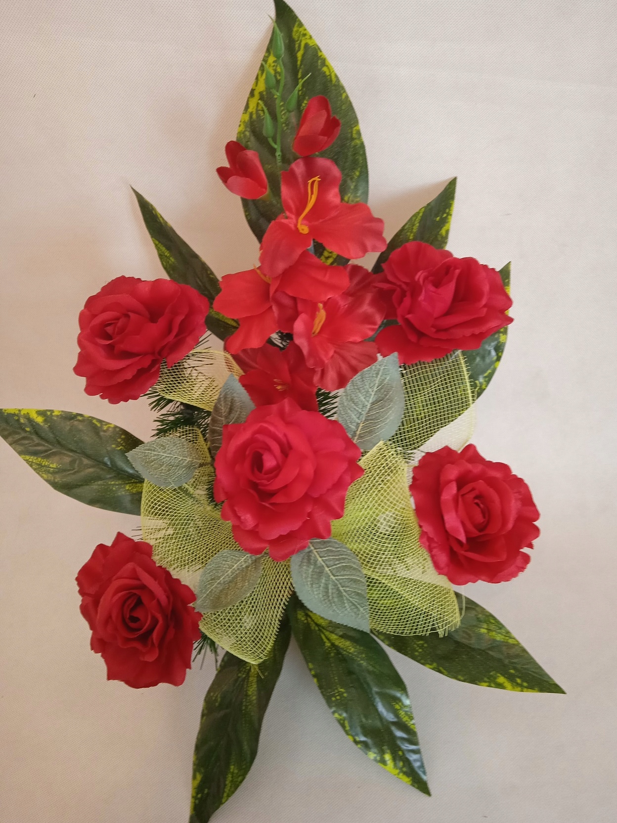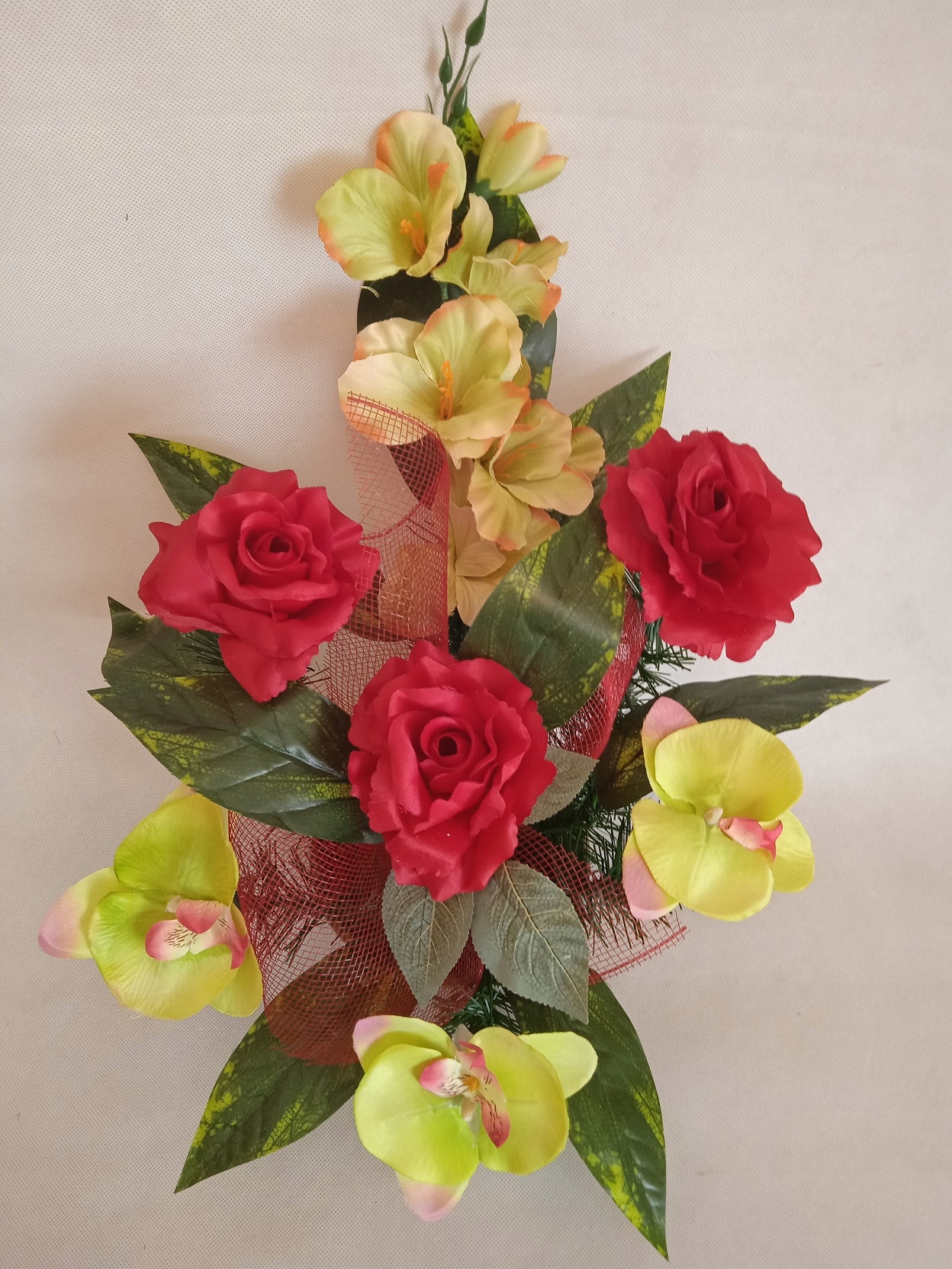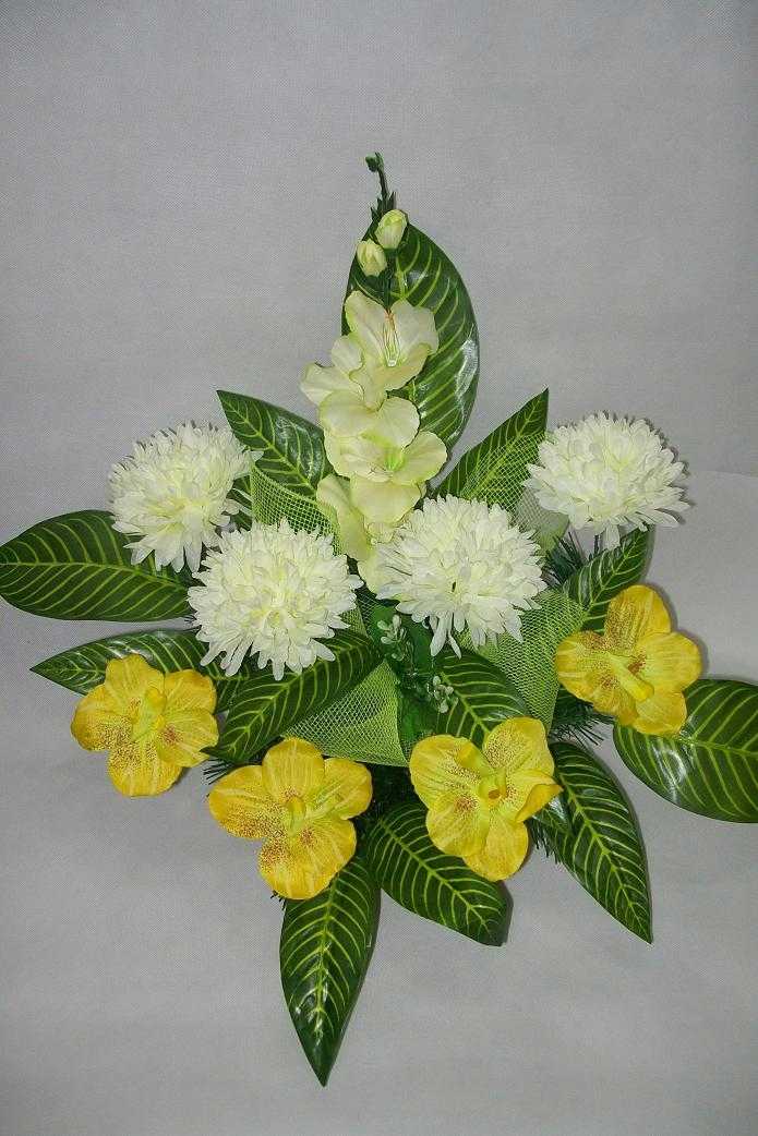 композиция для могилы (так называемый головной убор, Икебана) производится на искусственном елке, которая шокирована круглым горшком круглого пластикового горшка с диаметром 12 см 16 см с вышеупомянутой и высотой 7 см.