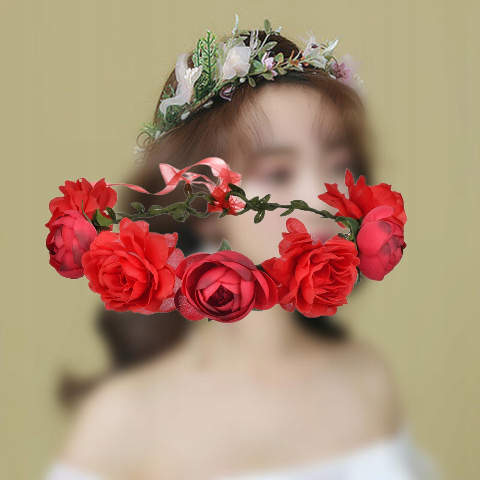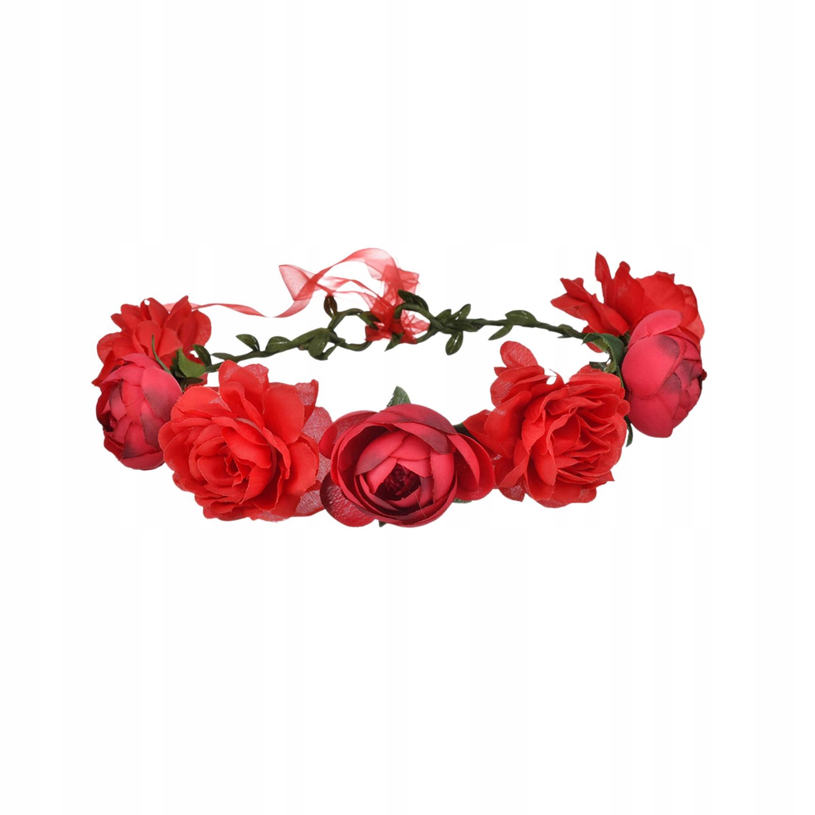 Цветочная повязка на голову цветок венок для волос искусственная роза с красной лентой