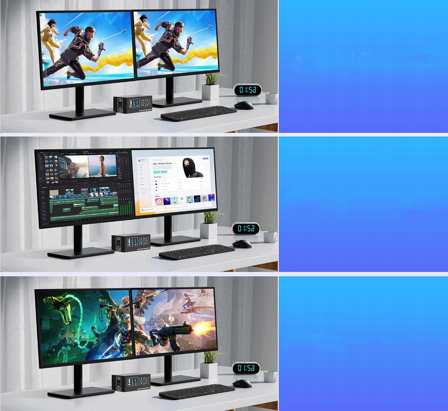 Благодаря поддержке Ultra High Resolution 8K при 60 Гц , наш коммутатор KVM обеспечивает удивительный визуальный опыт. Поддерживает разрешение до 8K при 60 Гц и 4K при 60 Гц, а также другие более низкие разрешения, что делает его совместимым с новейшими технологическими стандартами, такими как DP 1.4 и HDMI 2.1 . Чтобы пользоваться качеством 8K, как видеокарта, монитор и кабель должны поддерживать это разрешение.