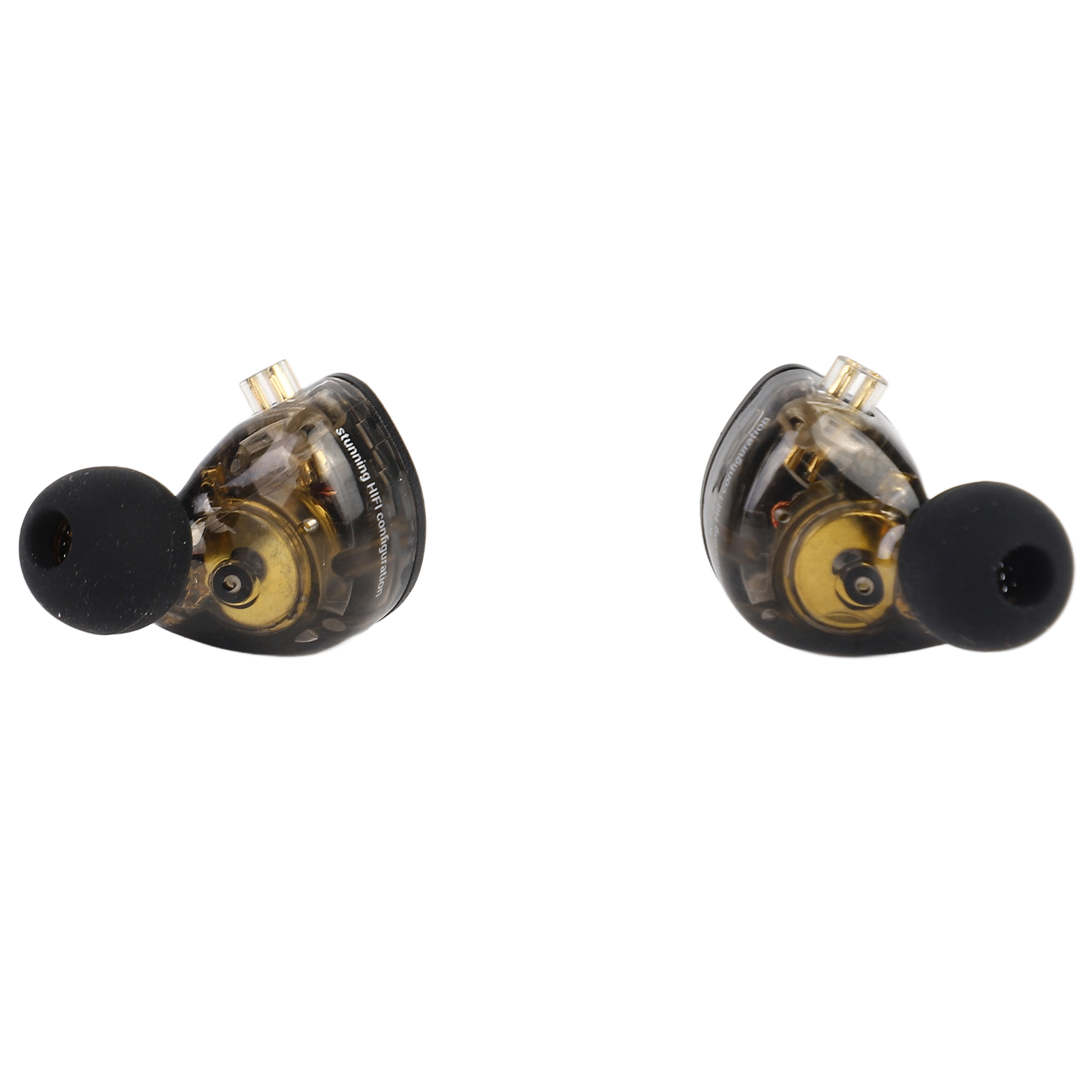 1. 1DD+4BA Hybrid Controller Units: 1 динамическая и 4 сбалансированная опалубка с каждой стороны, 10 приводных единиц, интеграция широкого звукового поля и высокое разрешение, приводящие бас и захватывающие уровни.