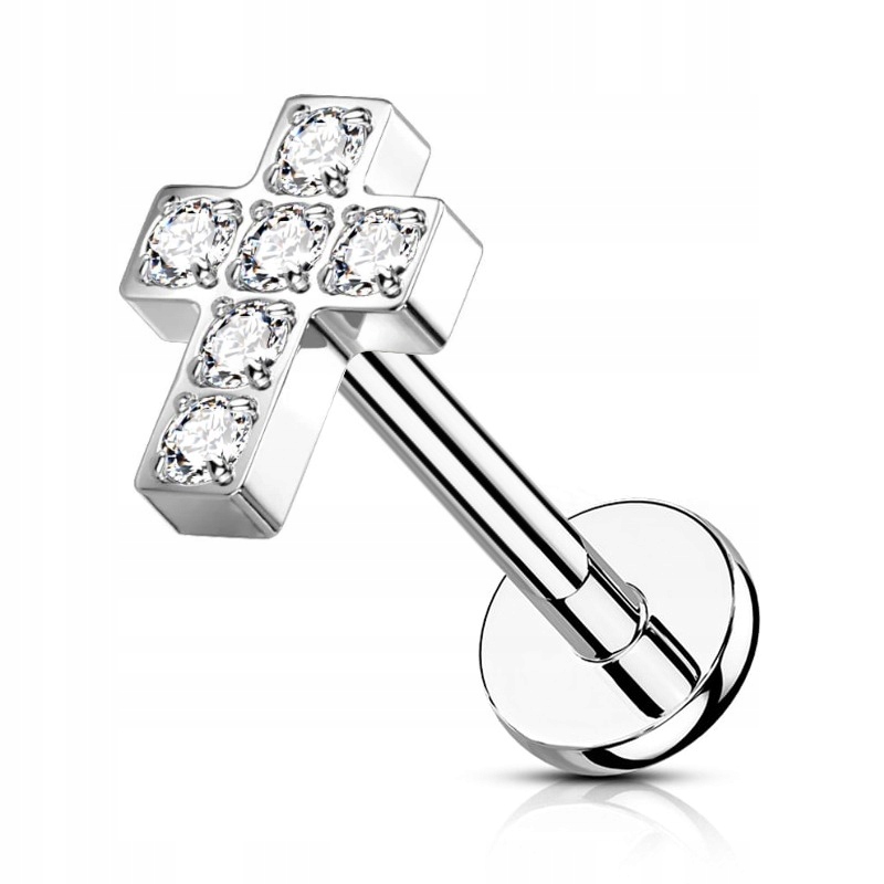 Лабрет з кришталевим хрестом - срібло 1,2/8