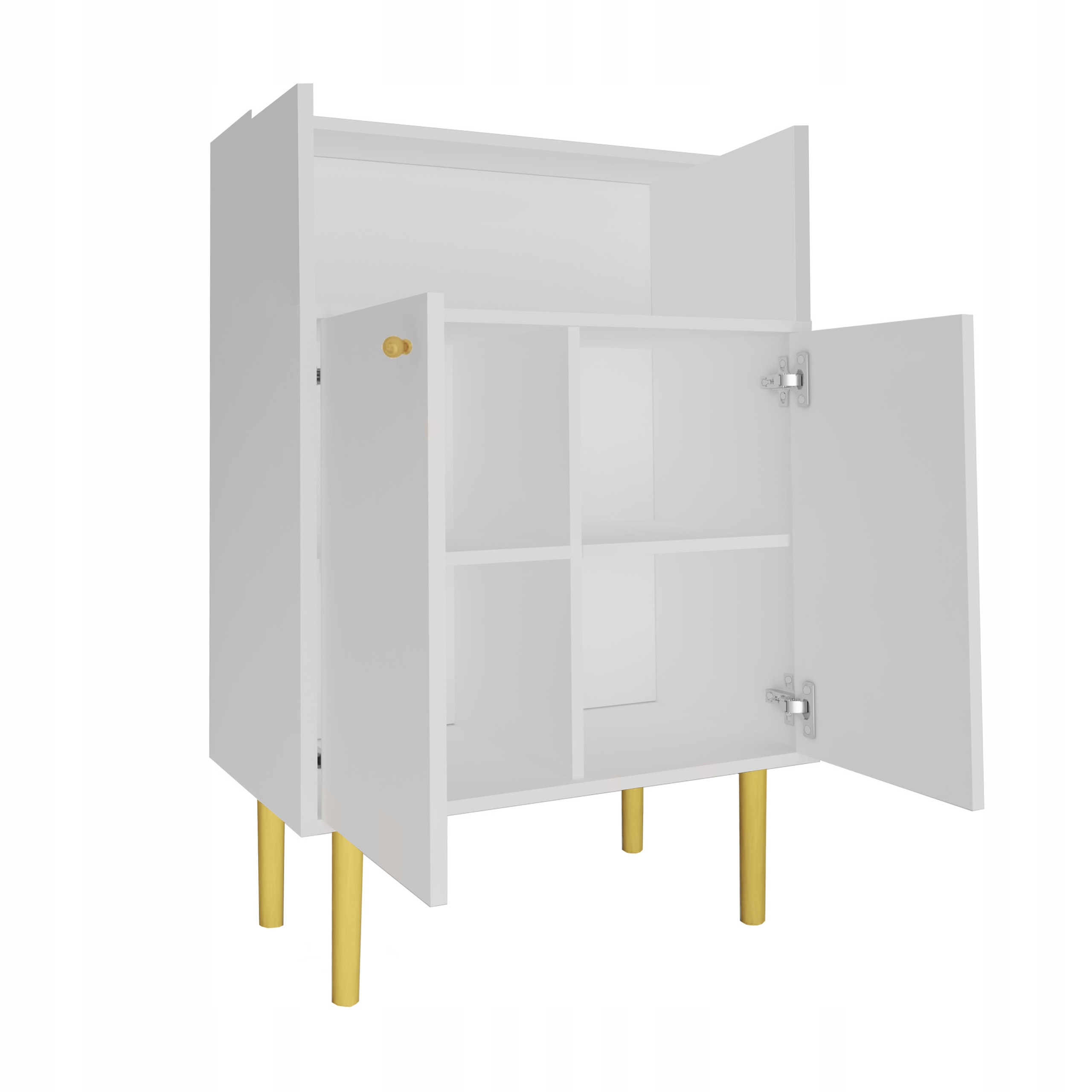 Сочетание белой тарелки с аксессуарами из золотистого металла создает модный элегантный предмет мебели. Идеально вписывается в комнаты в стиле гламура.