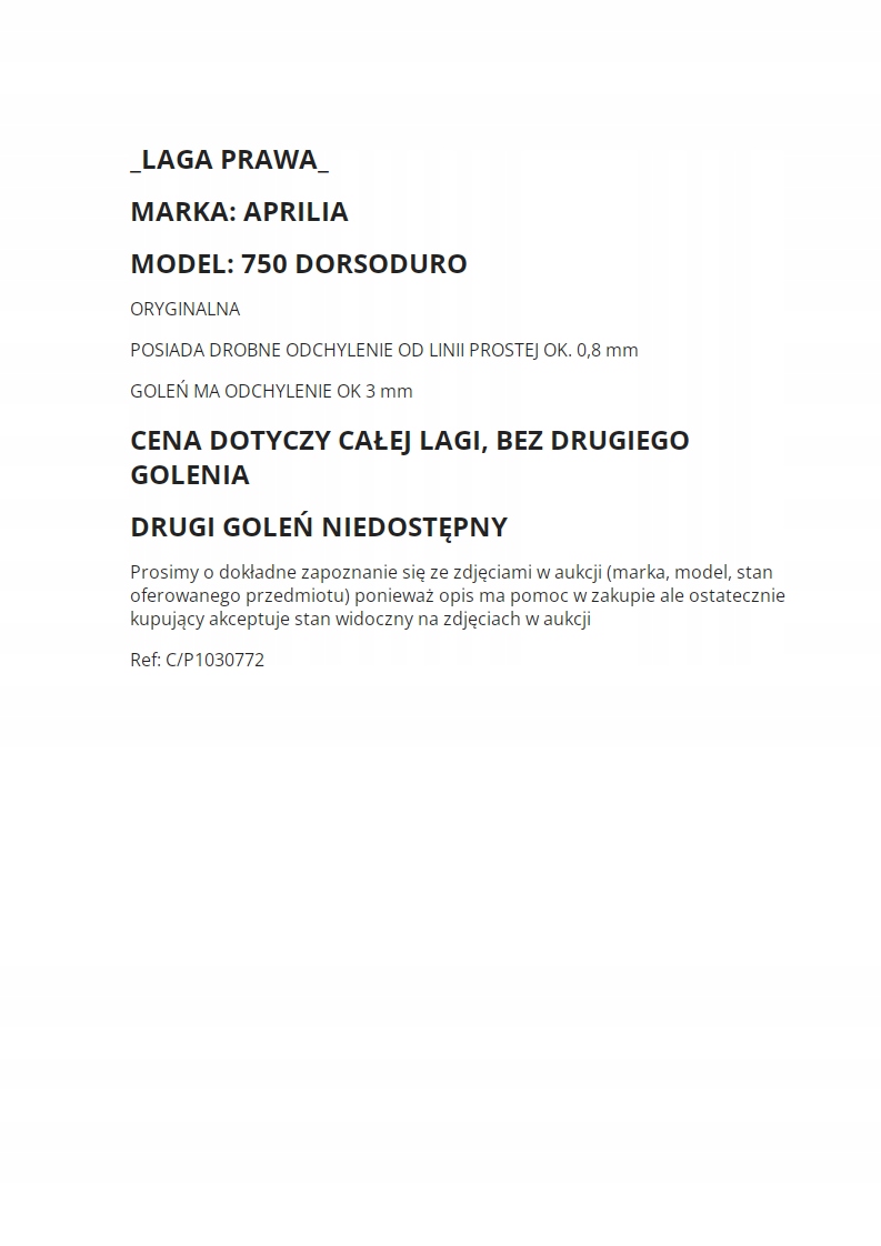 Пожалуйста, внимательно прочитайте фотографии на аукционе (бренд, модель, состояние предлагаемого предмета), потому что описание помогает в покупке, но в конечном итоге покупатель принимает состояние, видимое на фотографиях на аукционе