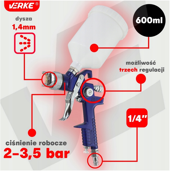 Пистолет живописи для живописи 1.4 600 мл Verke