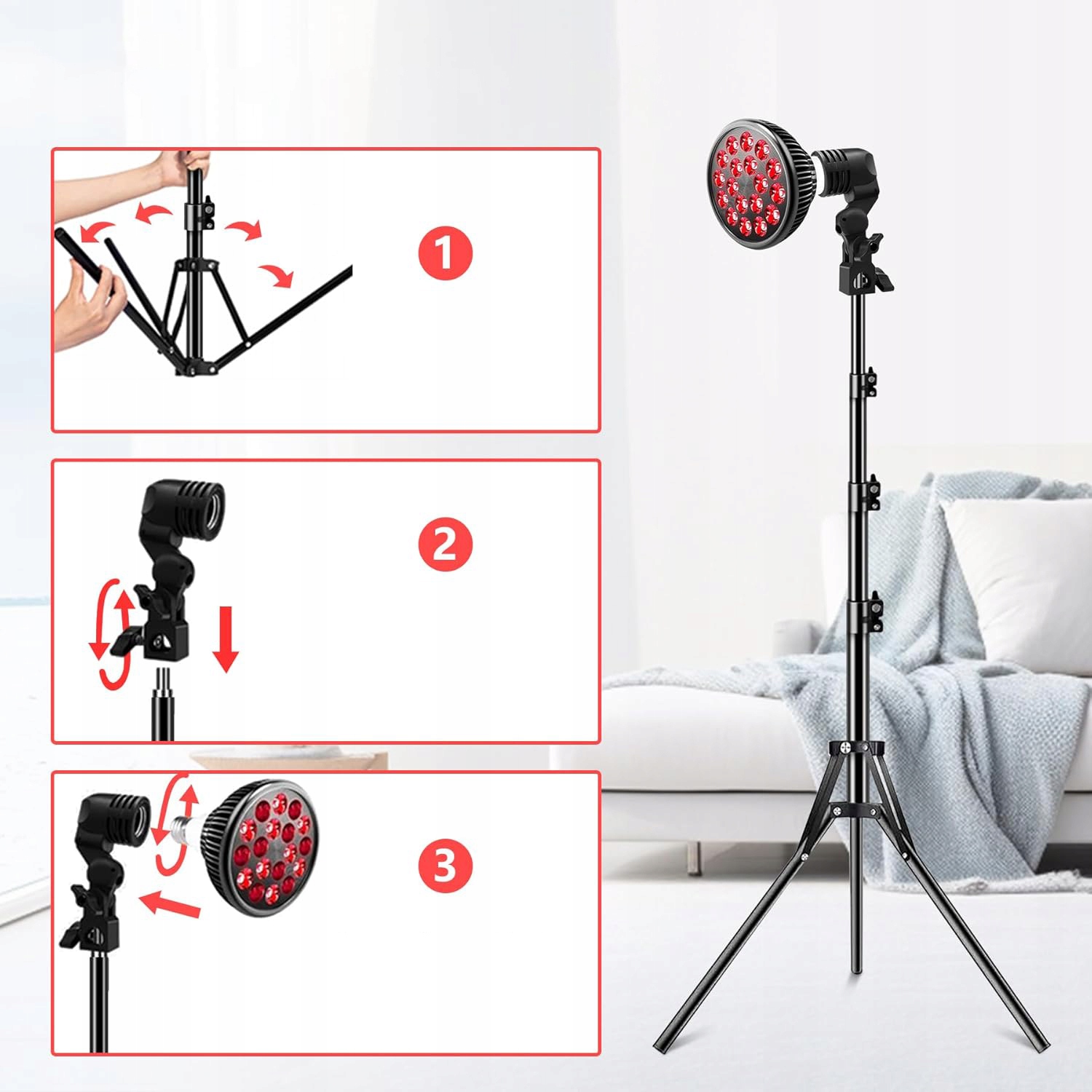 Лампа терапии красного света 54W, 660 нм + 850 нм, регулируемый штатив