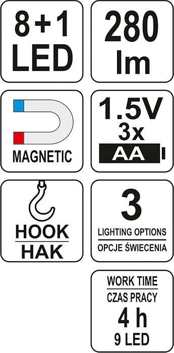 ЛАМПА ДЛЯ МАЙСТЕРНІ 8+1 LED МАГНІТ 2В1 YATO