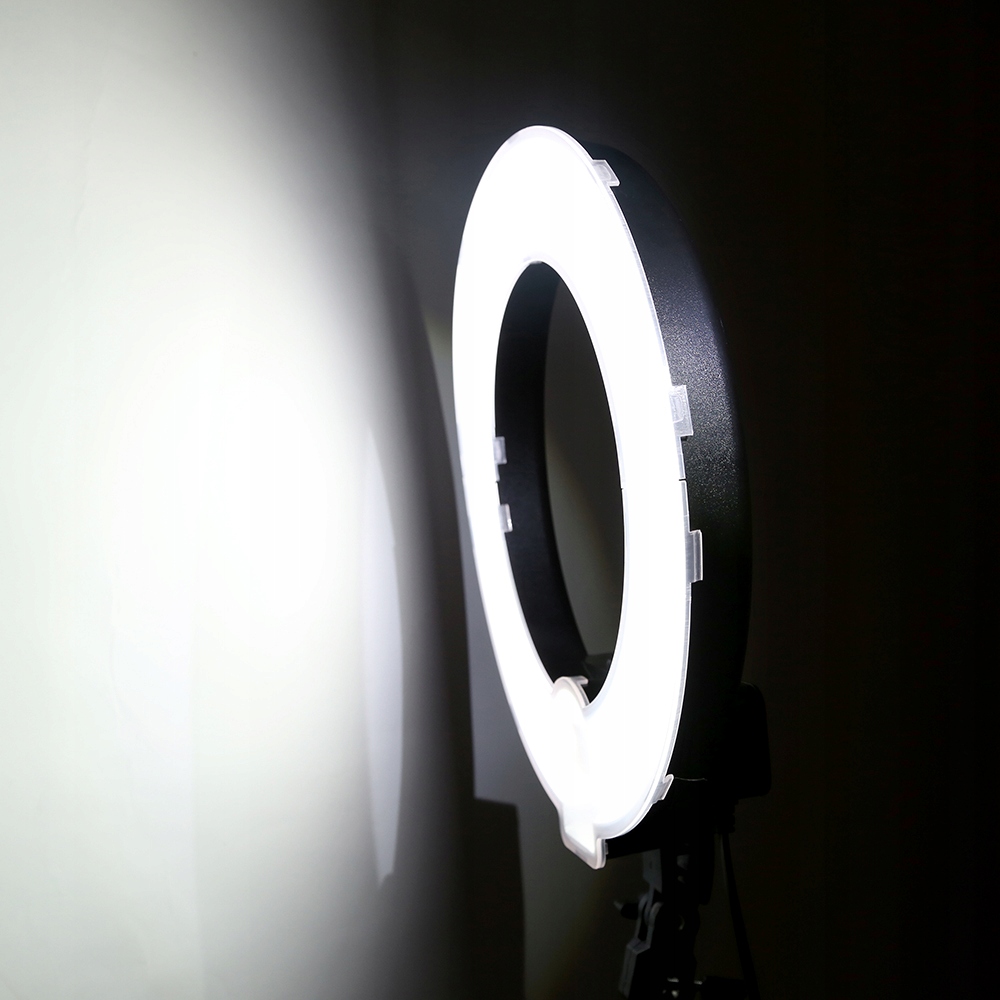 Кольцевая лампа постоянного света идеально подходит для фотосъемки небольших объектов и макросъемки. Это один из немногих снимков, который полностью лишен мерцания — он не вводит в заблуждение измеритель баланса белого камеры. Лампа обеспечивает длительную, безотказную работу и отличную цветопередачу на уровне Ra>90. Лампа также идеальна в качестве лампы для макияжа и портрета. Дополнительным преимуществом является диммер, благодаря которому мы можем плавно регулировать мощность света.
