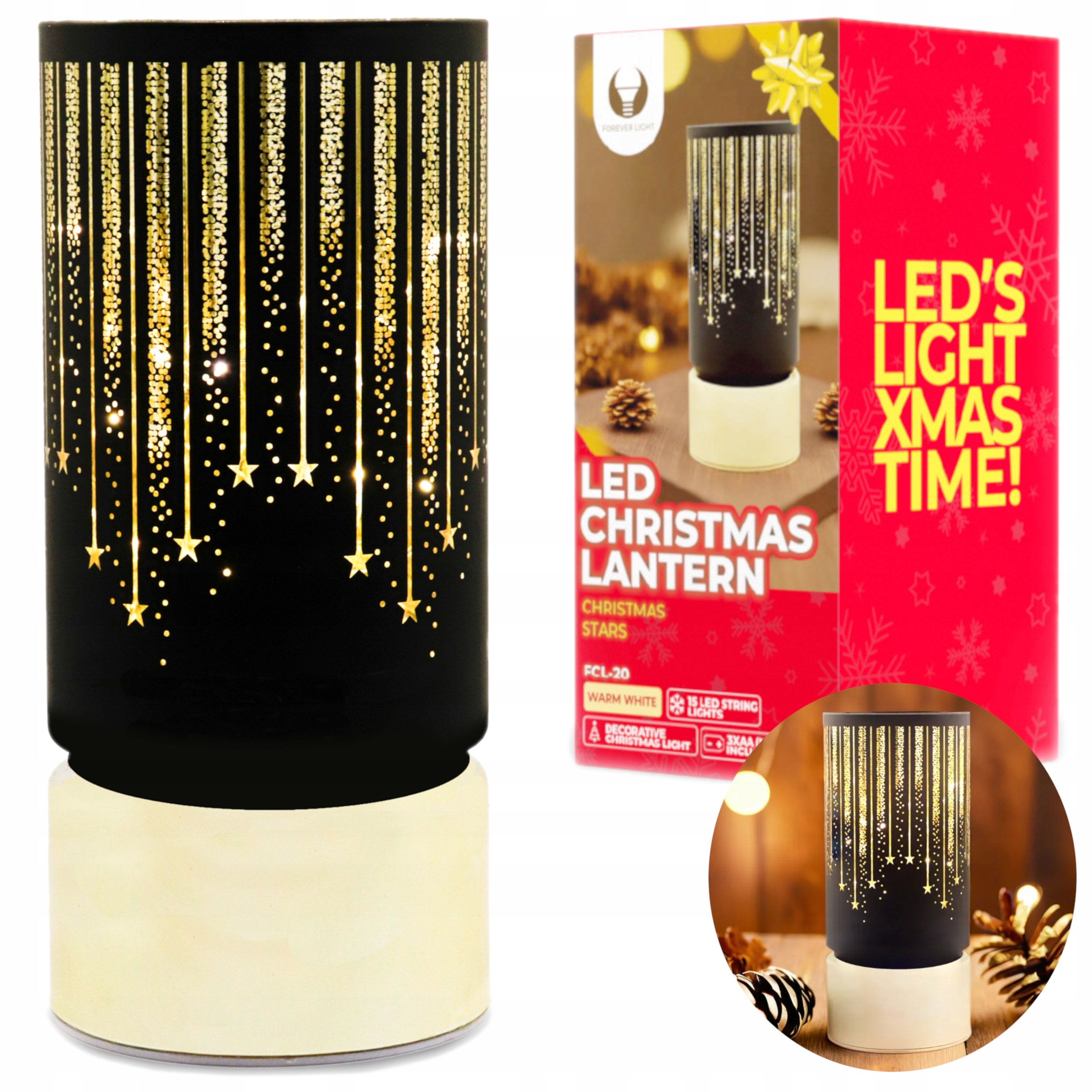 LAMPION SZKLANY ŚWIĄTECZNY Ozdobny LED DEKORACJA OZDOBA NA ŚWIĘTA 20 cm