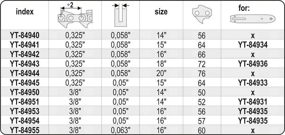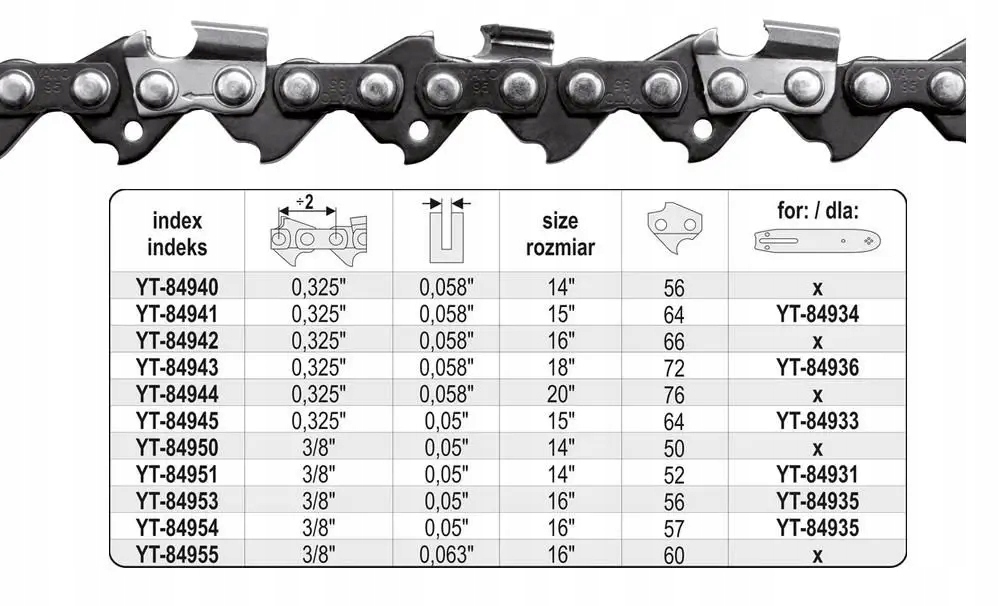 Цепь для погони 20'325 1,5 мм 76Z YT-84944 Yato