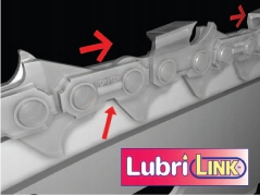 Lubriwell Смазочные отверстия в ячейках, ведущих режущей цепи, помогают распространять масло по всей длине направляющей канавки