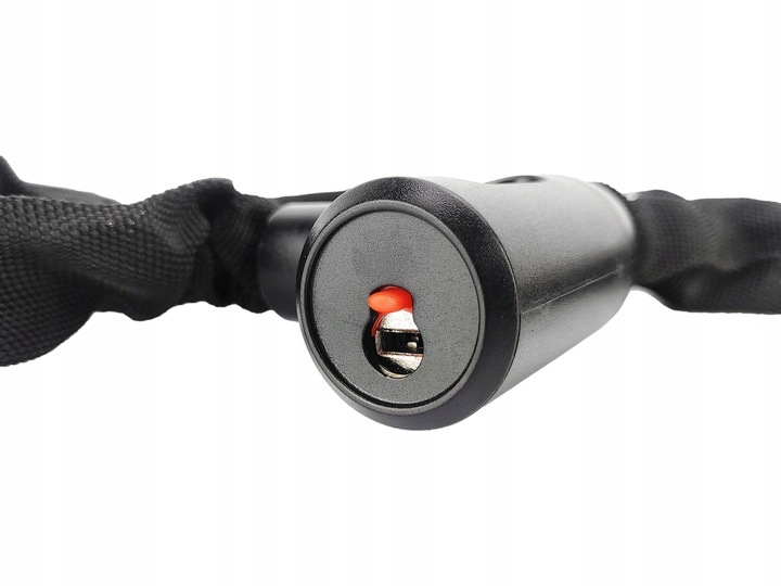 изготовлен из стали, закаленные ячейки диаметром 6 мм. длина крепления составляет 90 сантиметров . Цепь сшита в дополнительном внешнем водонепроницаемом материале , который защищает от царапин рама велосипеда. Закрытие Universal и достаточное для большинства приложений