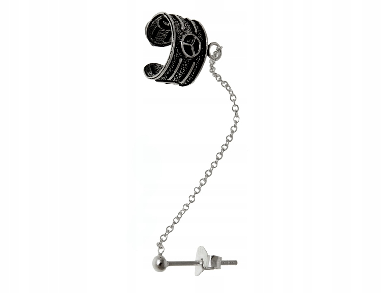 ухо для 925 серебро с знаком комнаты, шина с цепью, которая прикреплена к традиционному креплению палки с ягненком. Ювелирные изделия сделаны из темного серебра (так называемого окисленного серебра), стилизованного как старое.