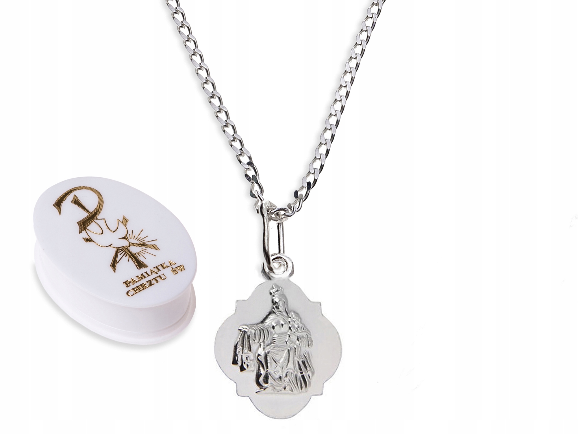 Традиционный набор, состоящий из серебряной цепочки и медальона, является идеальным набором для Первого Святого Причастия. или Крещение как мальчиков, так и девочек. Комплект выполнен из серебра высочайшего качества 925.