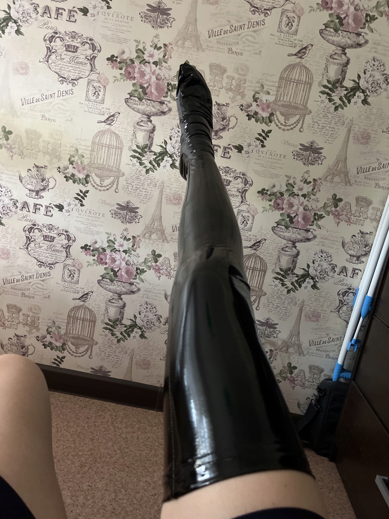 латексные чулки самостоятельно -выдерживание черного латексного длинного h1>