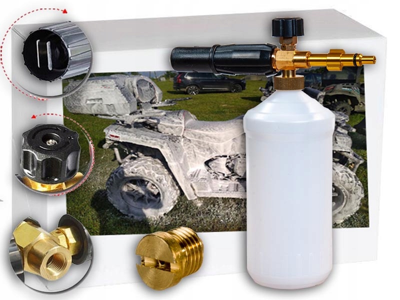 Пенообразователь отличается байонетным соединением, используемым в стиральных машинах домашней серии >. Пенный распылитель прекрасно работает со всеми типами чистящих средств, такими как: активная пена, шампунь с воском и без него, гидровоск и многие другие. Объем пенообразователя 1 литр.