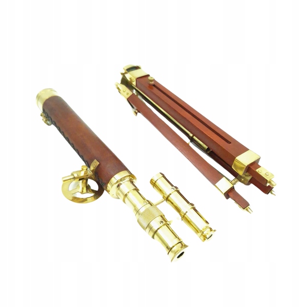 Откройте для себя совершенство ремесла с помощью телескопа из латуни высочайшего качества, установленного на стабильном деревянном штативе.