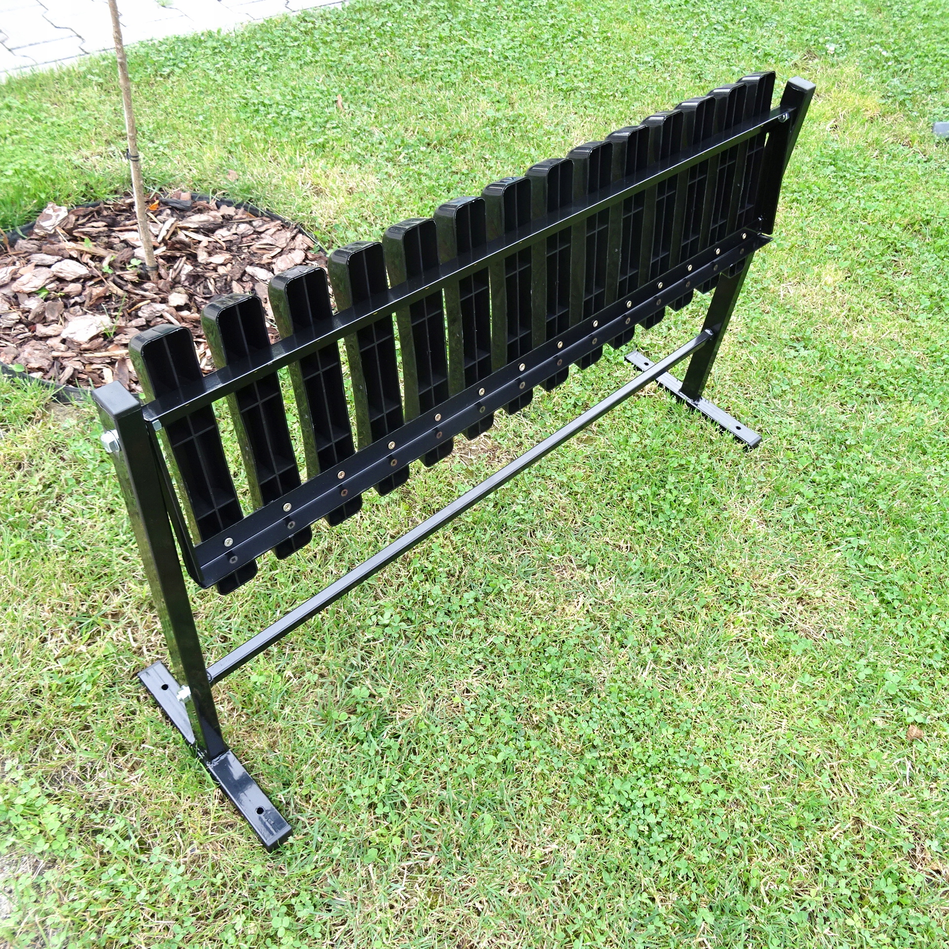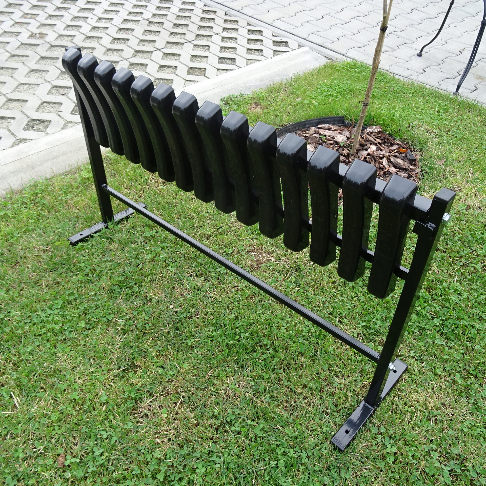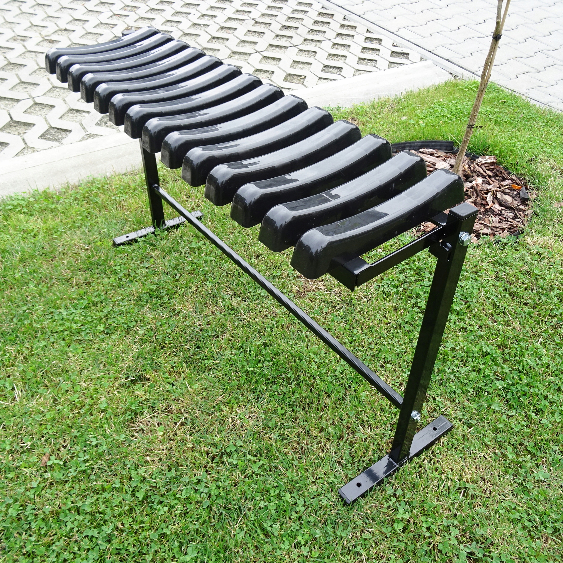 Изготовлена из толстого стального профиля с торцевыми крышками и твердым и прочным пластиком на сиденье.