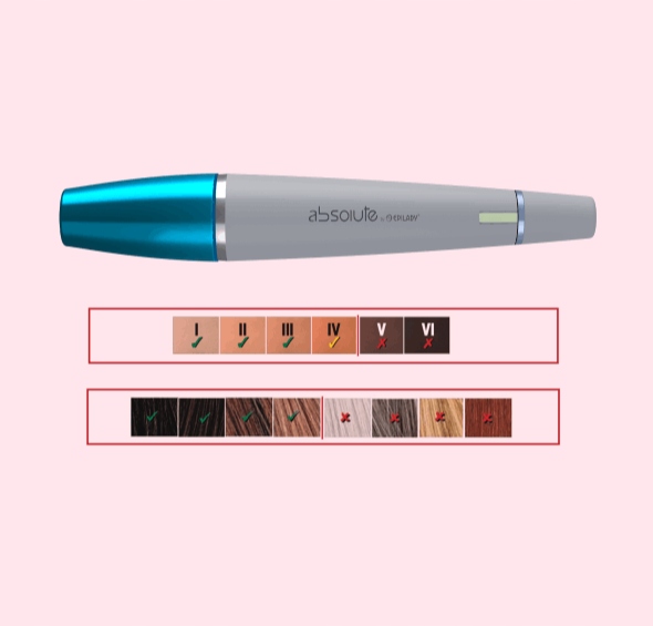 EPILADY Absolute предназначен только для использования при тонах кожи от I (белый) до IV (светло-коричневый)