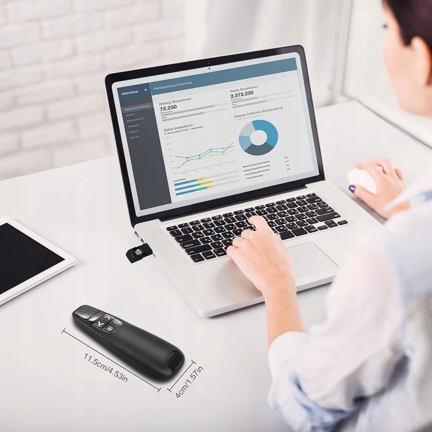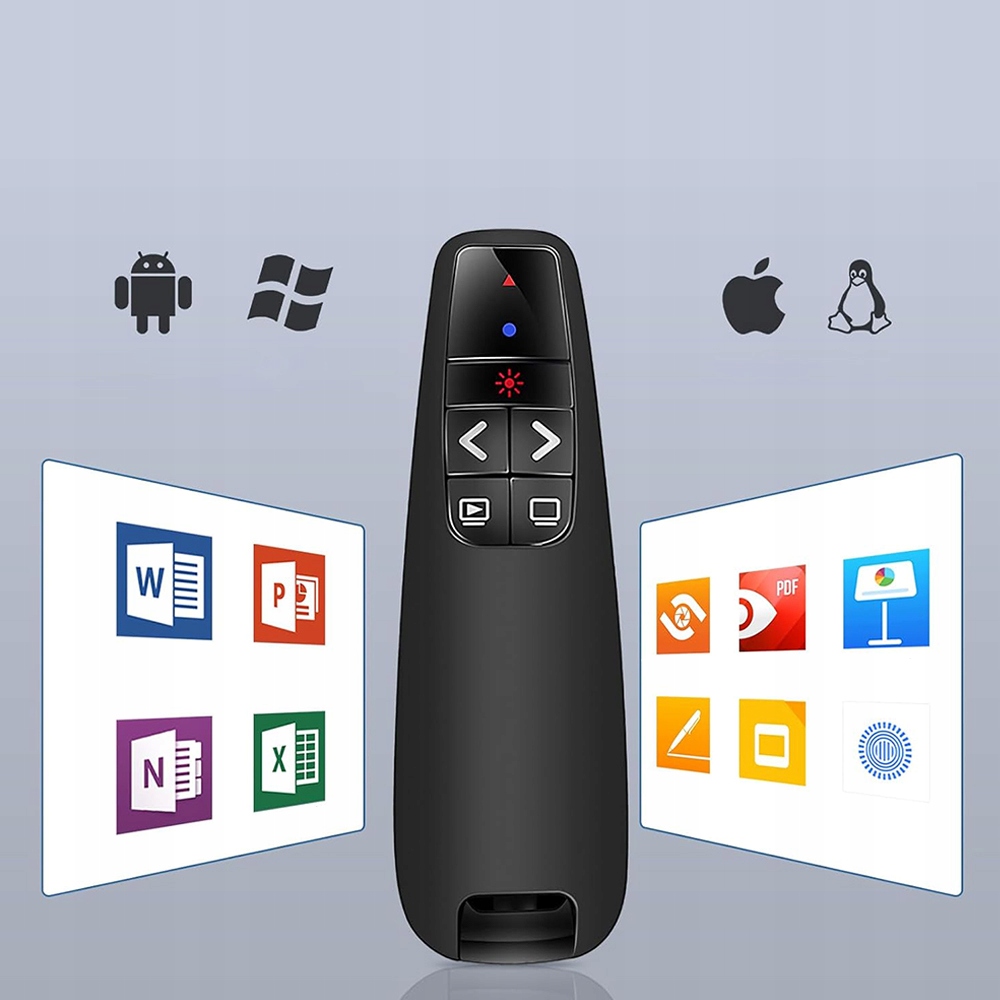 -Беспроводной презентер имеет эргономичный дизайн и удобно лежит в руке. Он компактный, легкий и портативный, поместится в любой карман.