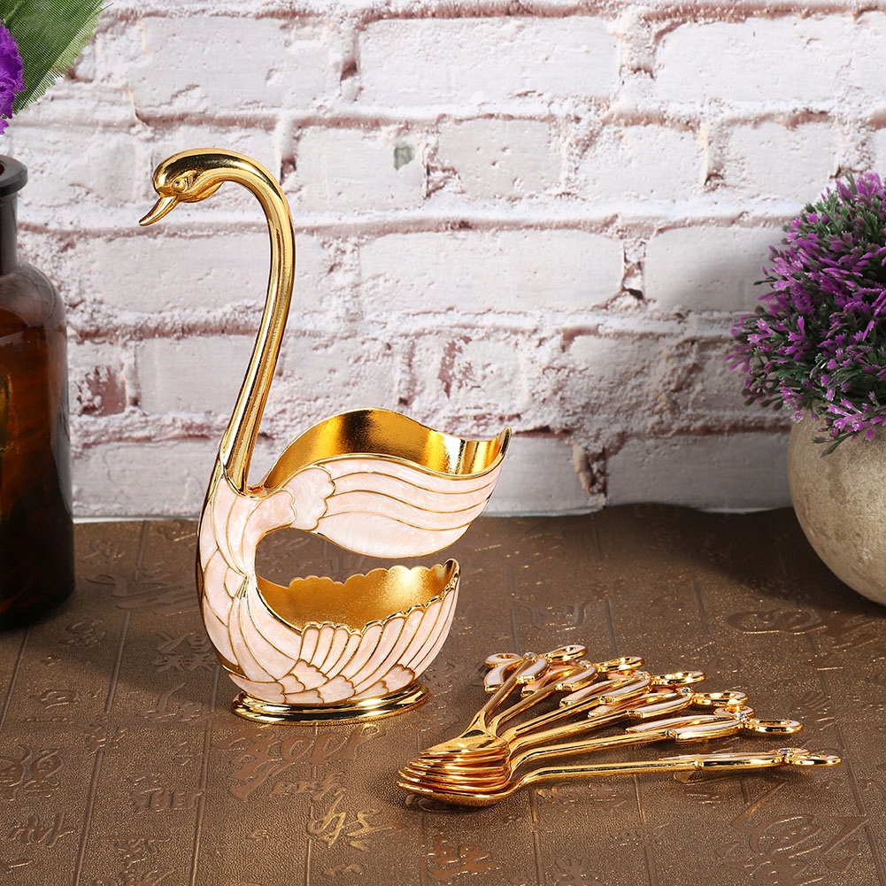 ЛЕБЕДІ 6 ЛОЖОК КАВОВА ЛОЖКА + НА ПІДСТАВКУ ДЛЯ